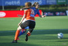 Stefanía fær boltann upp vinstri vænginn, sækir inn og tekur skotið en það er framhjá markinu