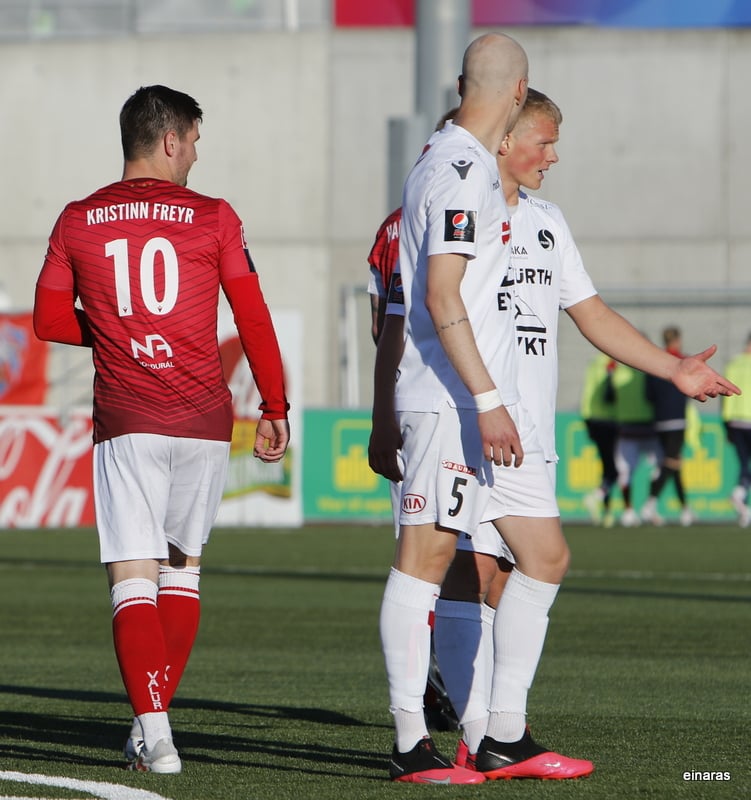 Kristinn Freyr er í holunni hjá Val og Siggi Lár út á vinstri kanti.