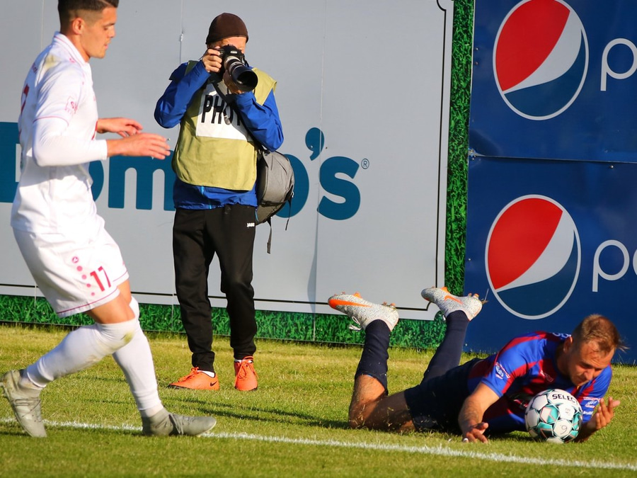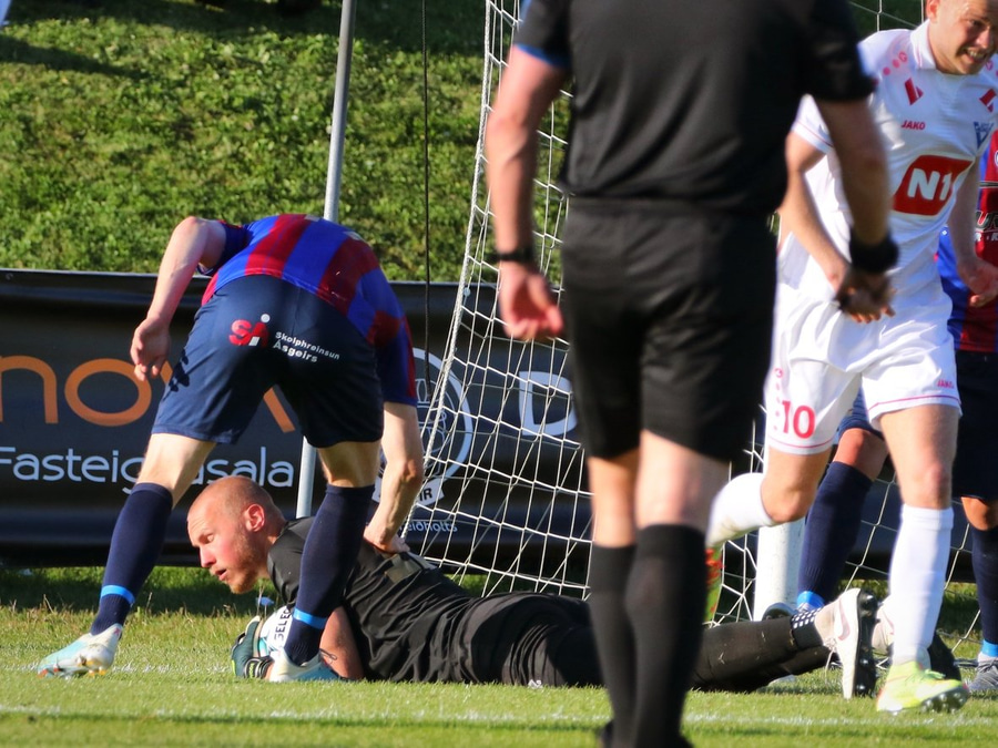 Billy Jay fer niður við hægra vítateigshorn og er allt annað en sáttur að Pétur flauti ekki. Það var mjög lítið í þessu.