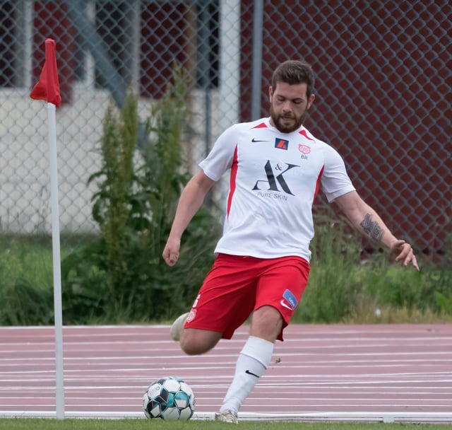 Ólafur Aron tekur aukaspyrnu úti vinstra megin.