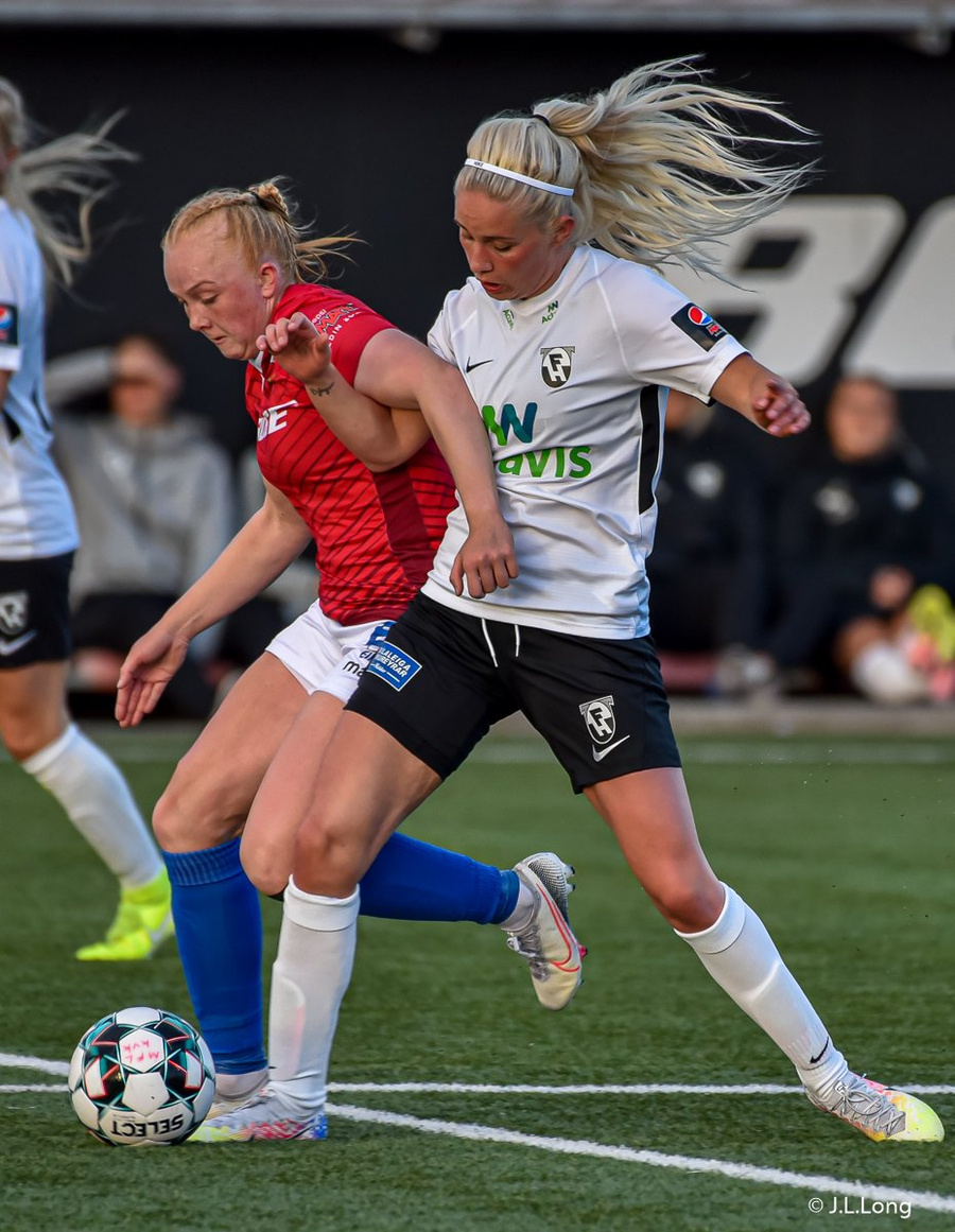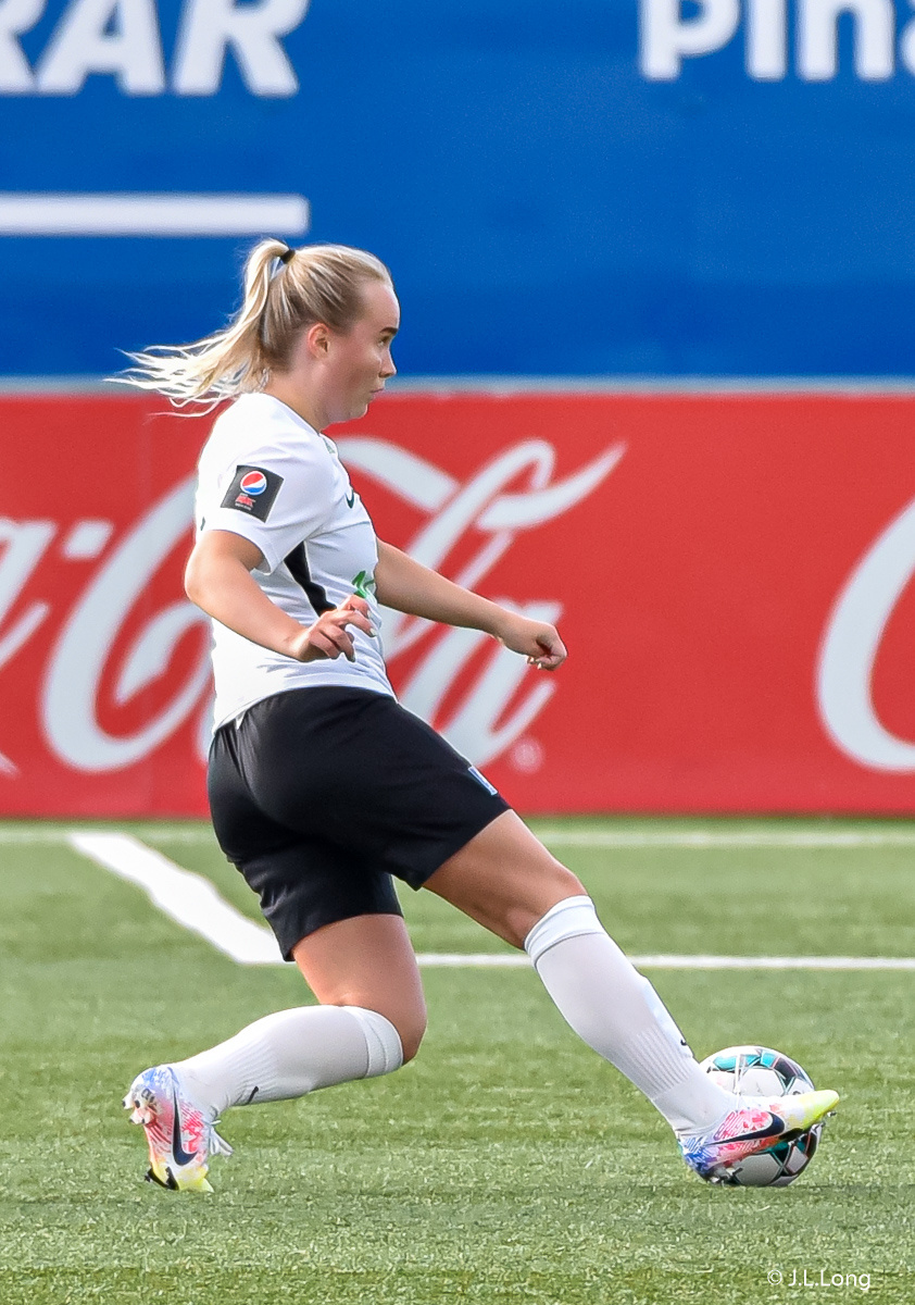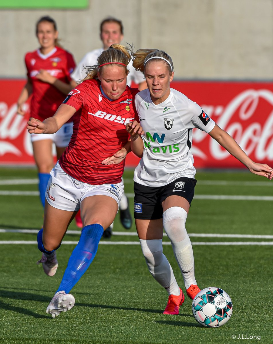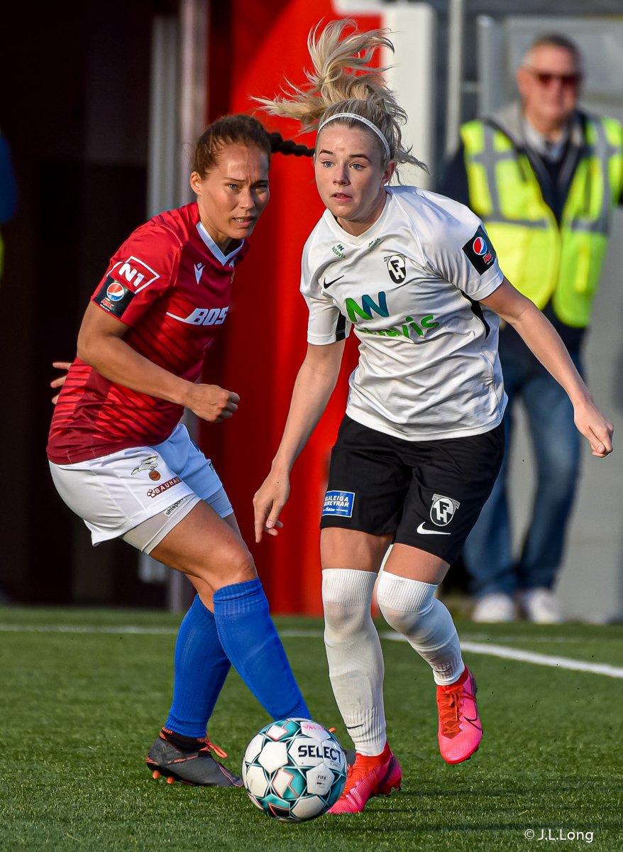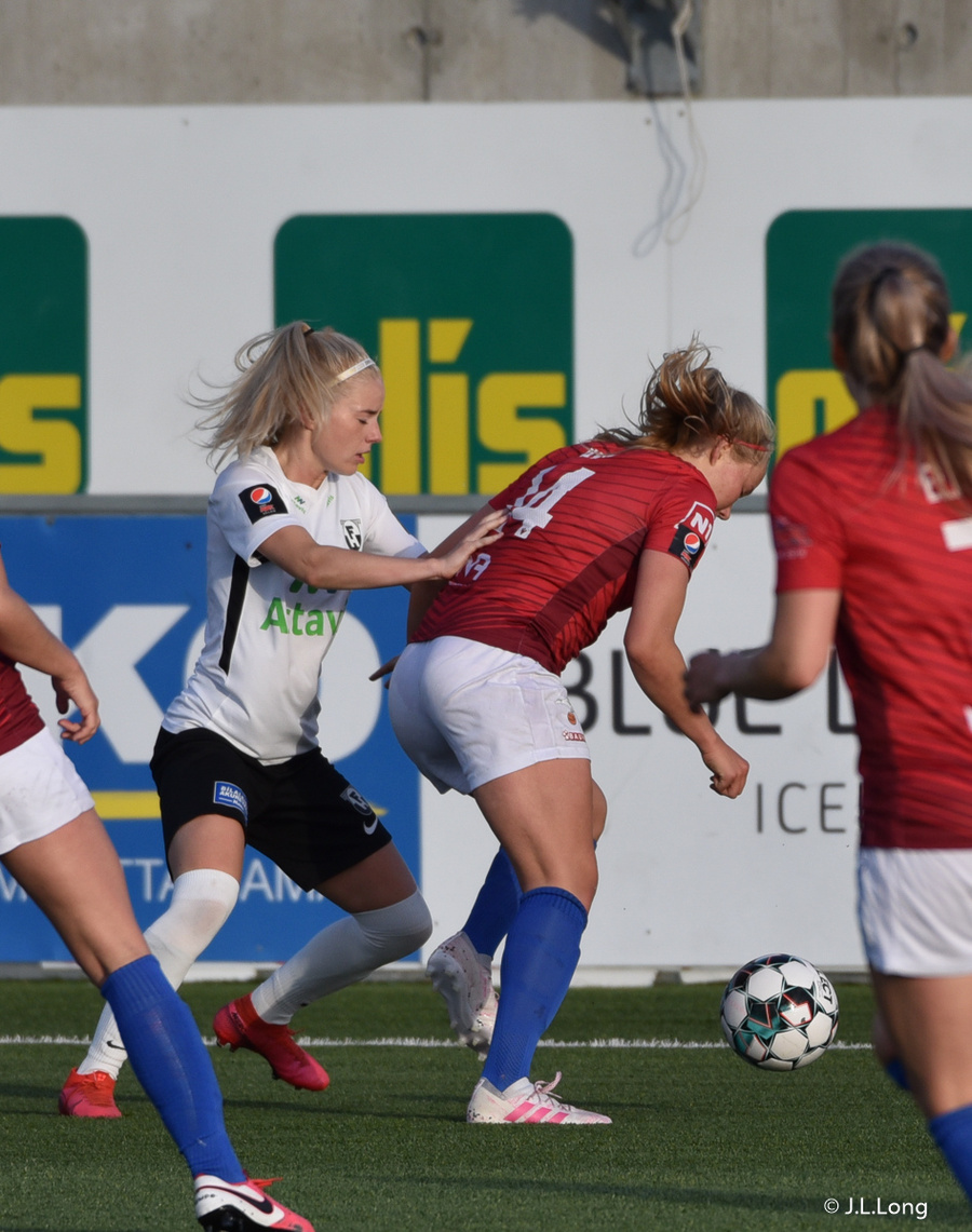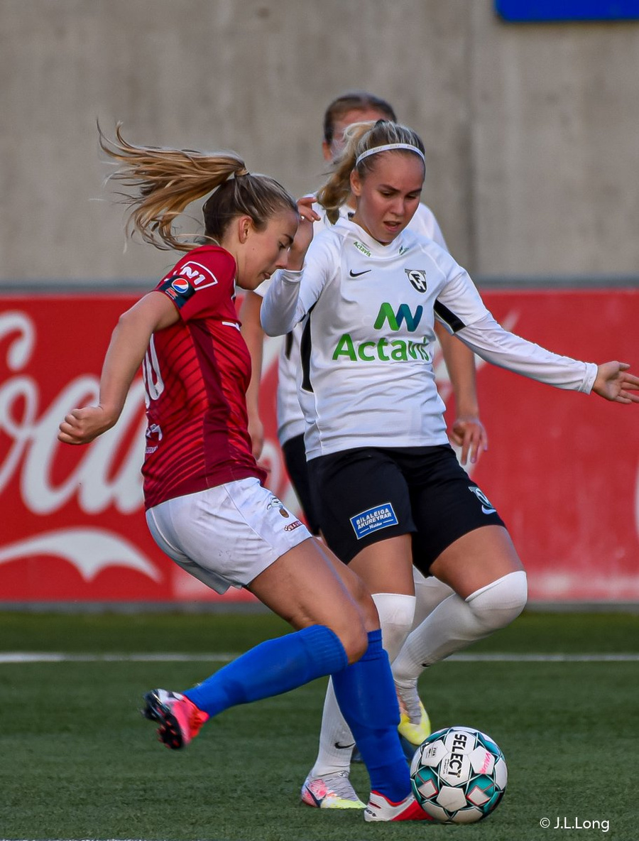 Elín Metta fór á fullri ferð upp kantinn en Ingibjörg mætir henni. Elín Metta reynir að leika á hana en Ingibjörg sparkar boltanum í Elínu og aftur fyrir.