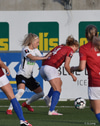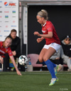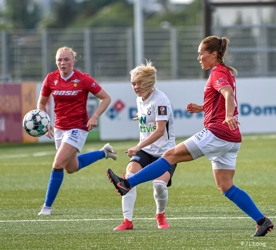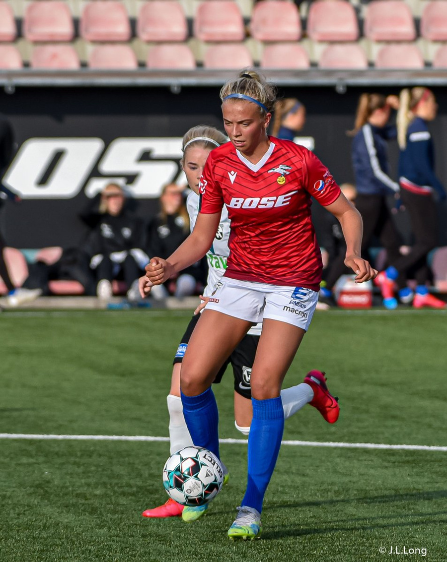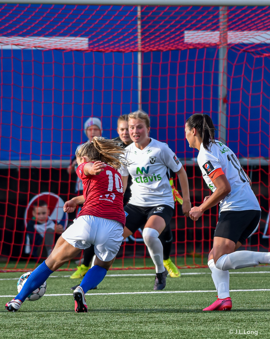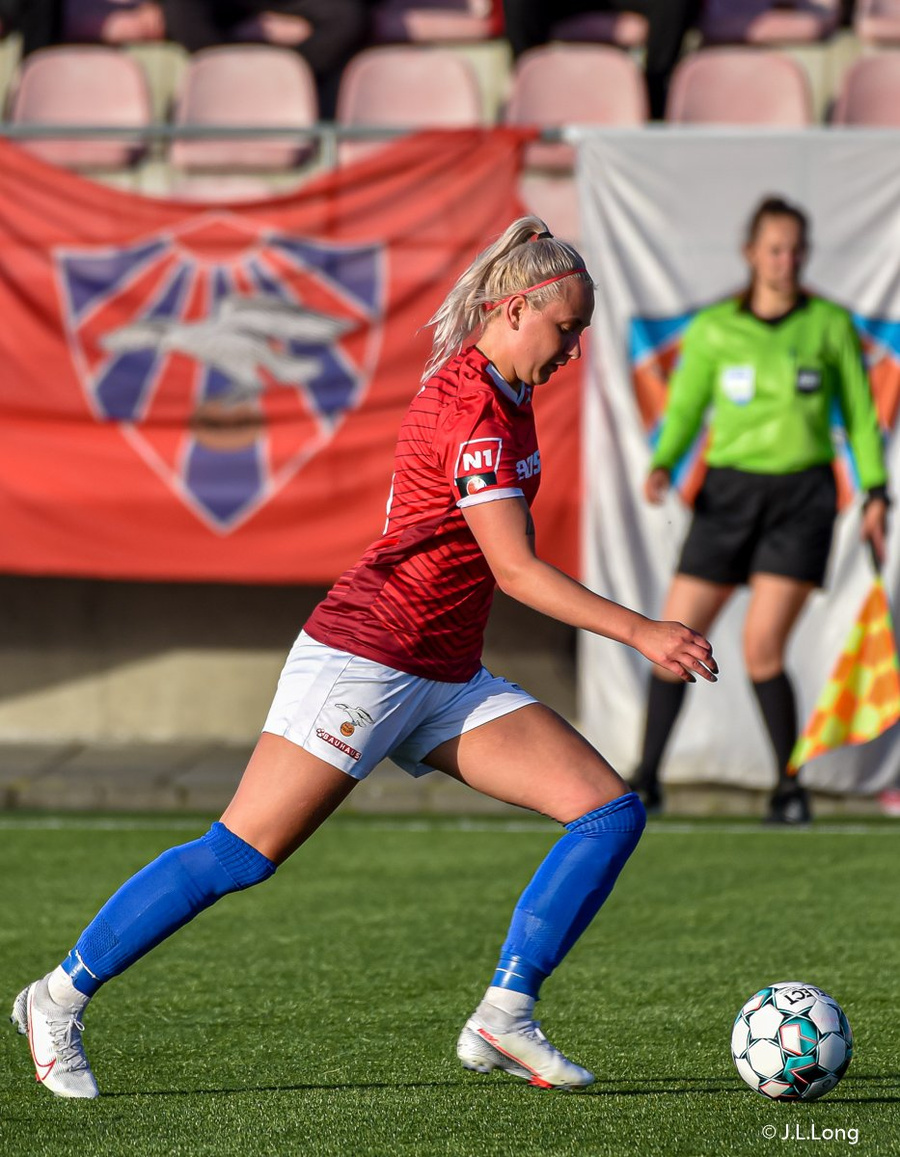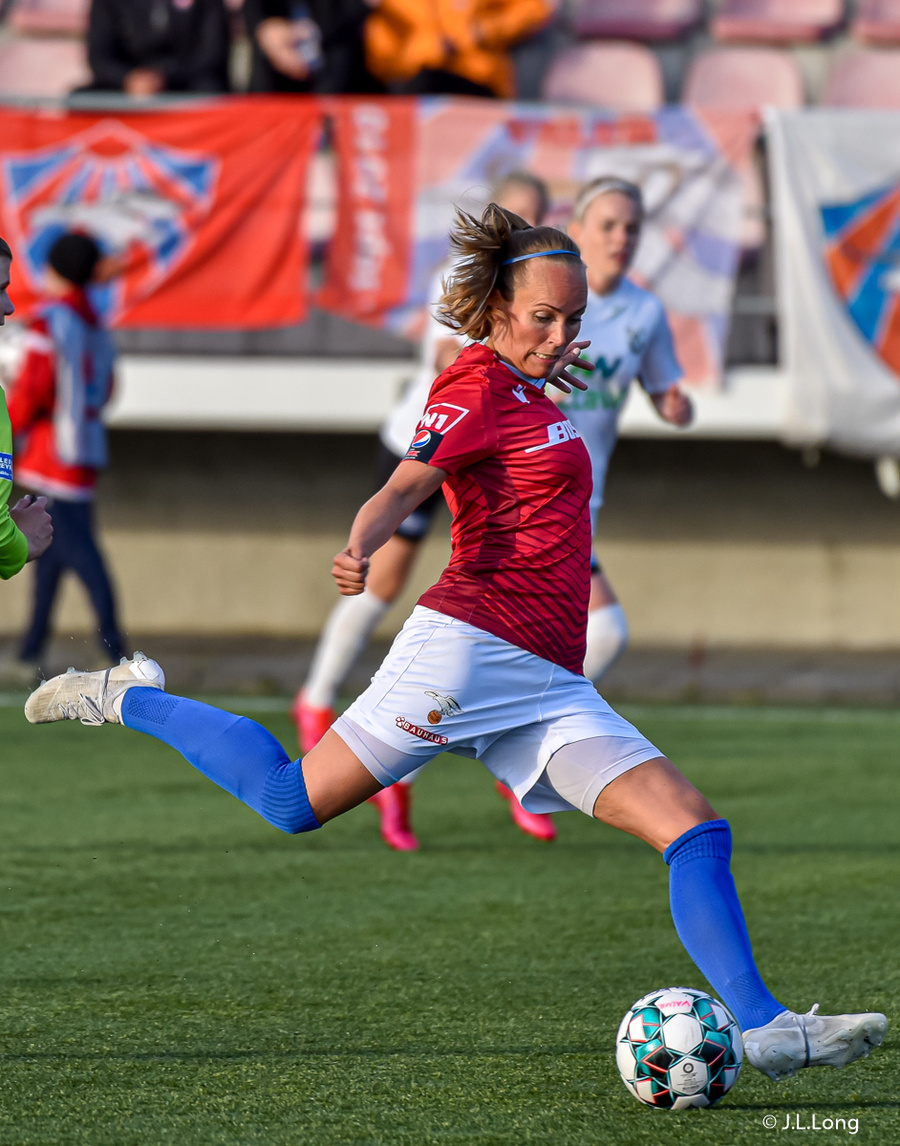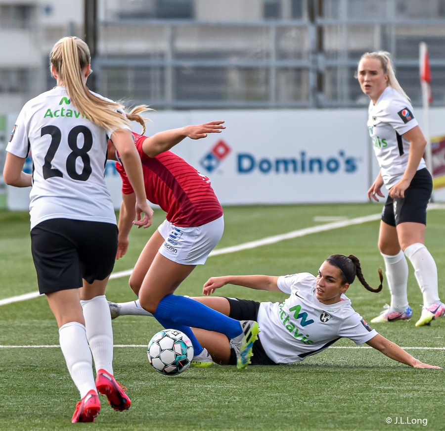 Helena leit út fyrir að vera að komast í fínt færi eftir að fá sendingu inn fyrir vörnina en dæmd rangstæð