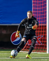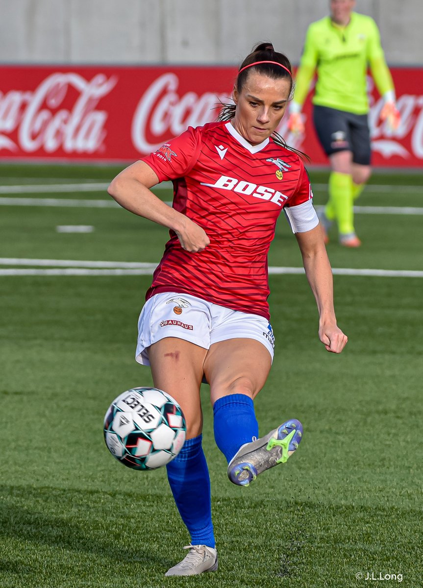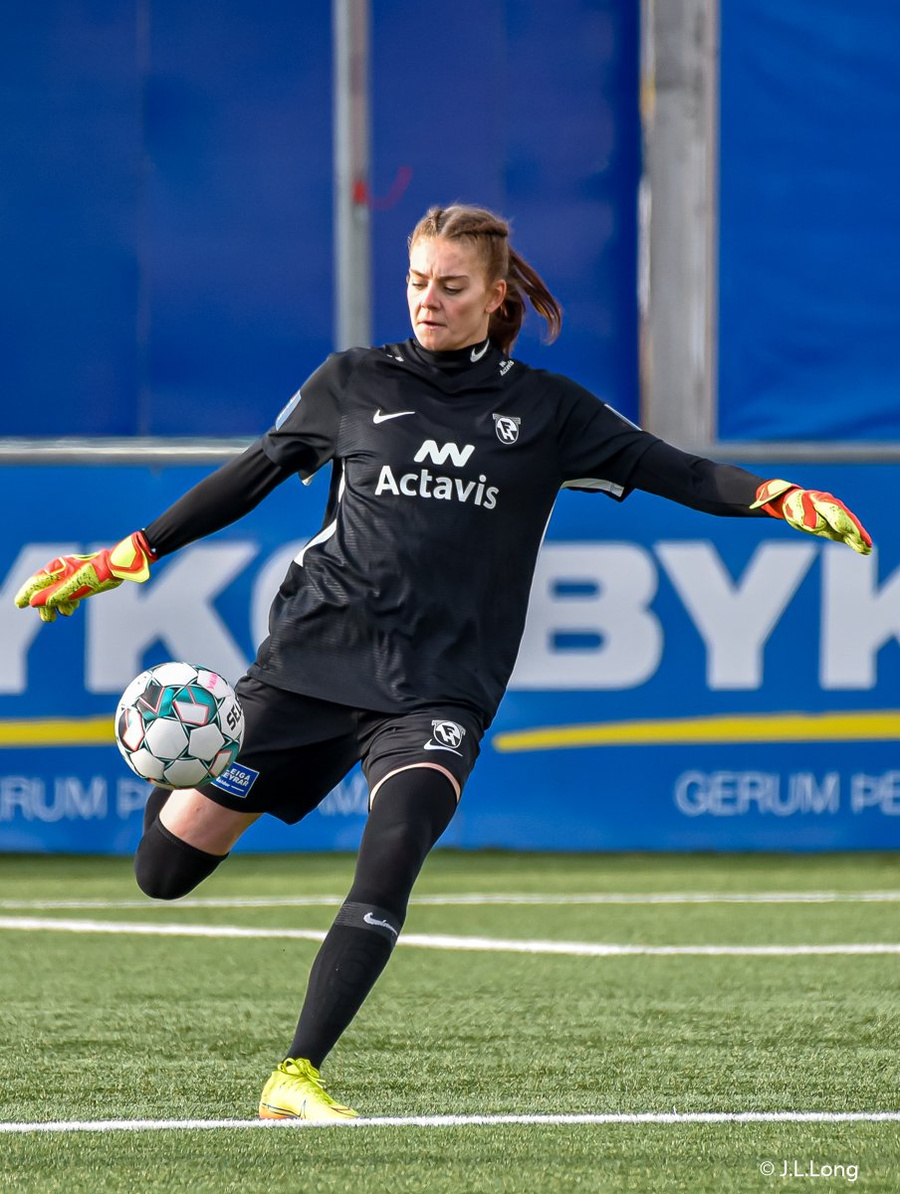 Hallbera tekur spyrnuna eins og venjulega en beint á Telmu í markinu.