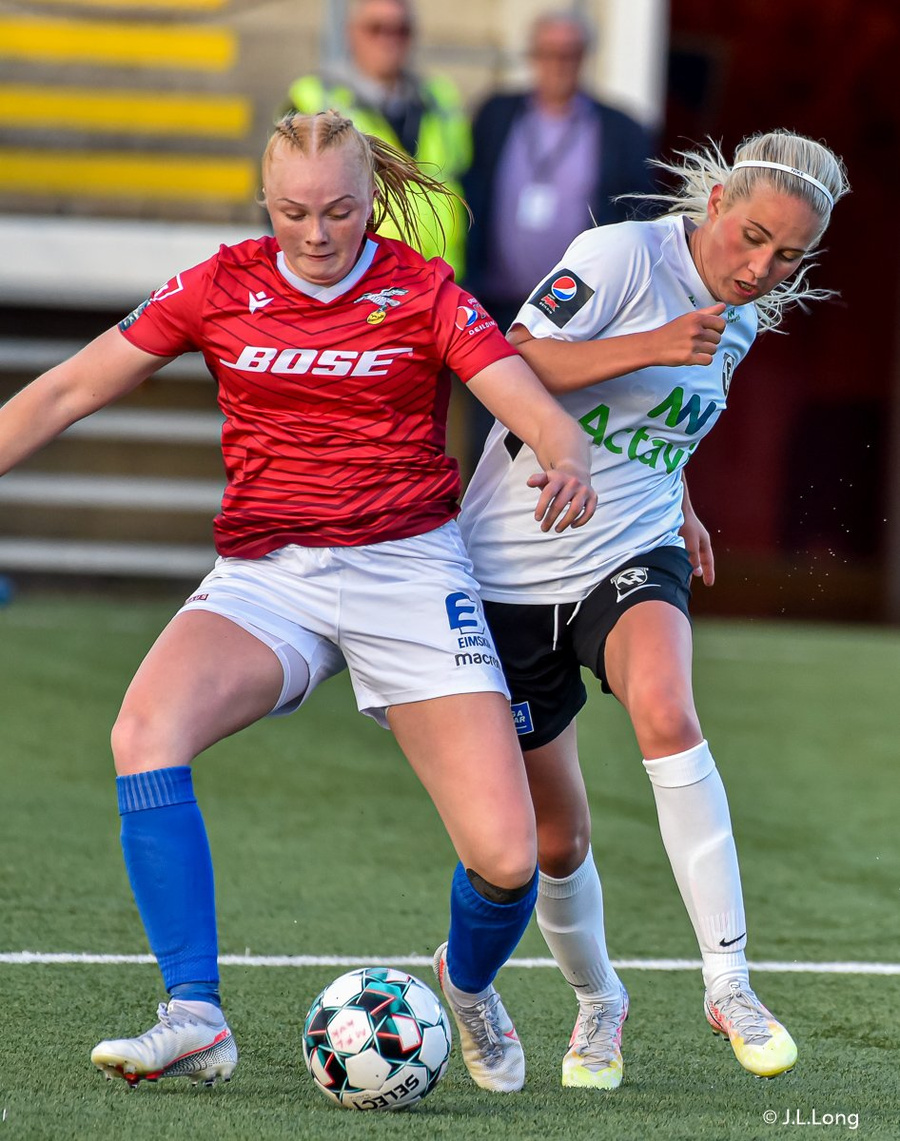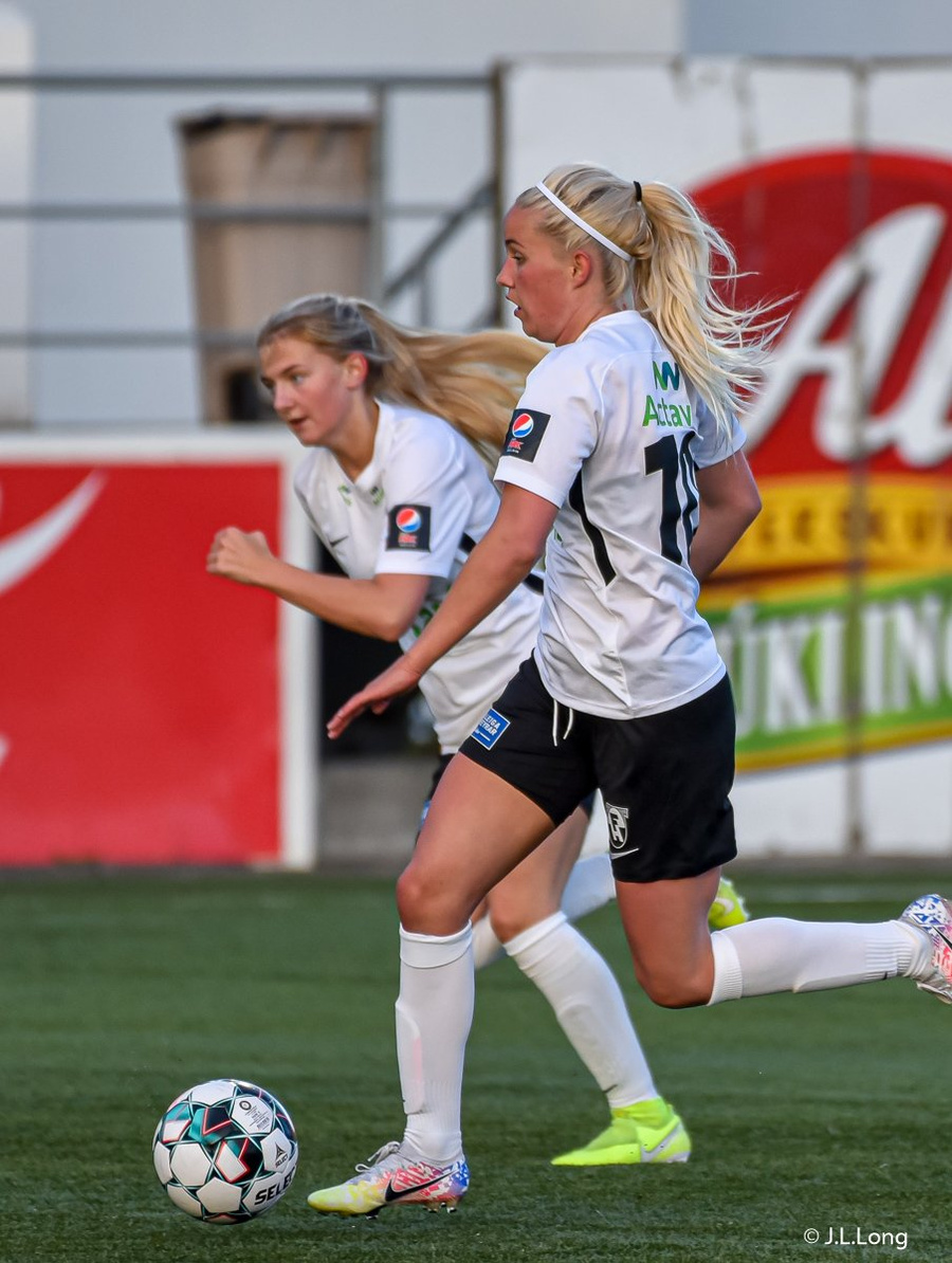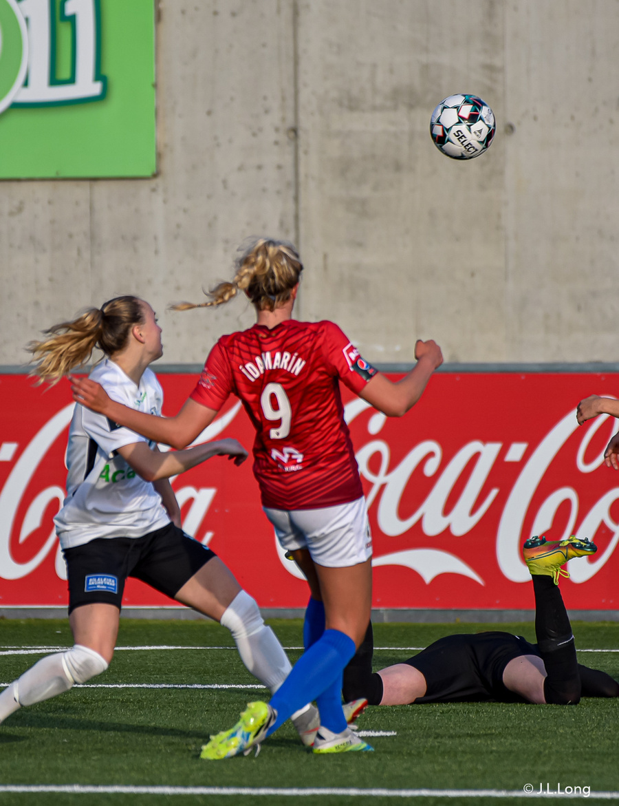 Hlín með fínan sprett upp völlinn og gefur hann út á Ásdísi sem skýtur fram hjá.