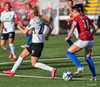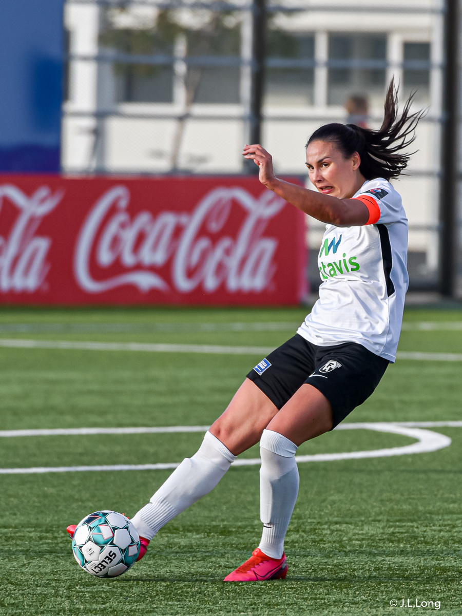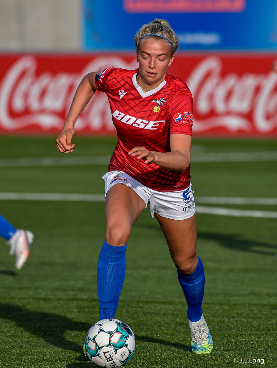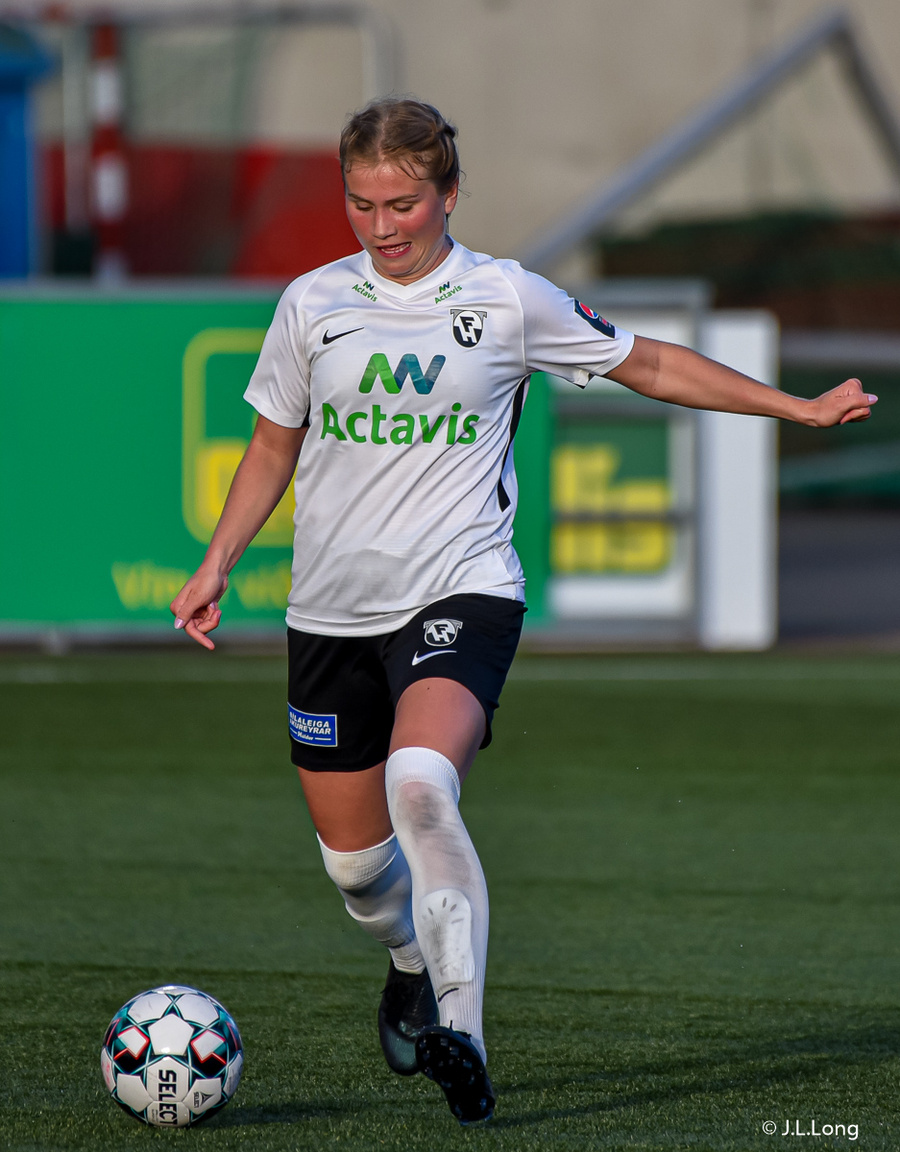 Hlín með fínan sprett upp völlinn og gefur hann út á Ásdísi sem skýtur fram hjá.