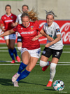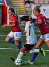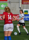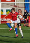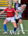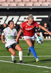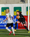 Ída Marín leggur boltann yfir á Bergdísi Fanney sem var alein í fínu færi og á skot á markið en það er varið.
