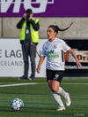 Valur vinna boltann á miðjunni og koma boltanum á Bergdísi sem hleypur upp vinstri kantinn og tekur nokkuð bjartsýnt skot utan við teig. Telma virðist alveg vera með boltann EN Telma missir hann svo á milli lappanna!