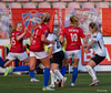 Sending frá hægri kantinum og Madison skallar boltann í netið!