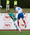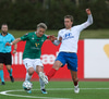 Höskuldur keyrir á Ástbjörn og reynir fyrirgjöf en Ástbjörn kemst fyrir og boltinn til Hákons.