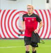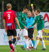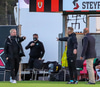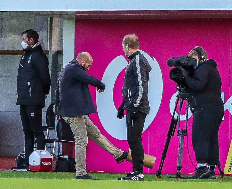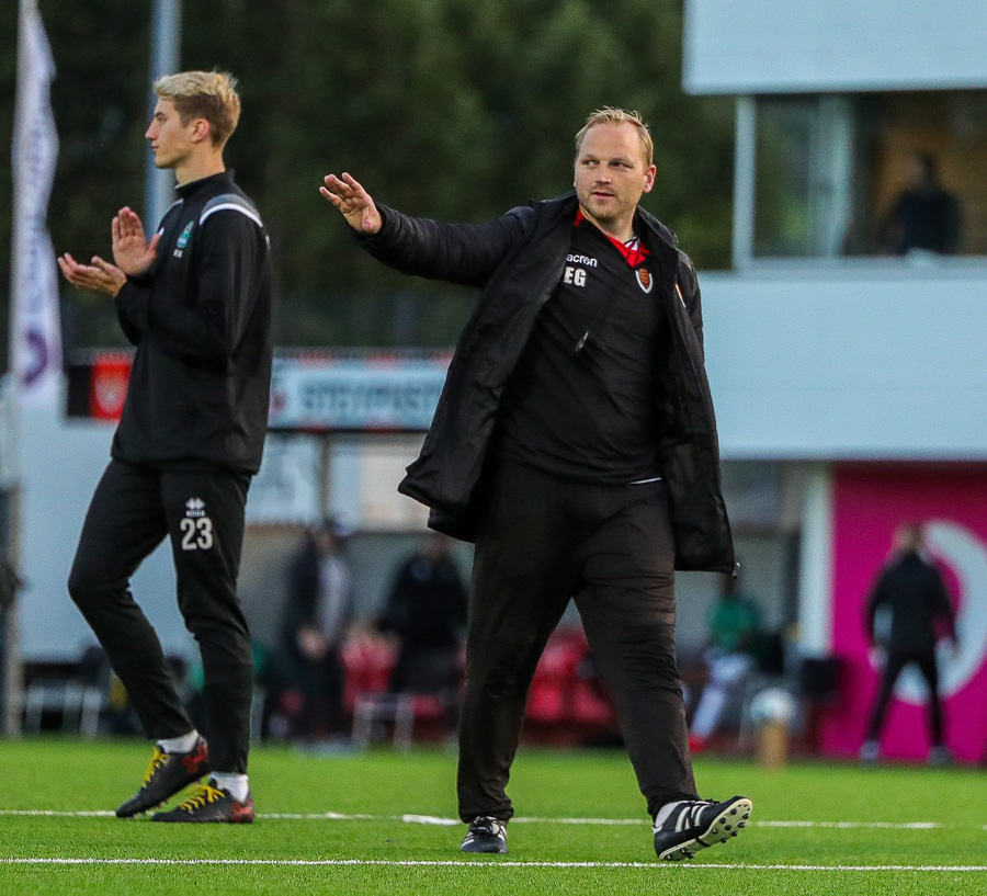 ÞJÁLFARI VÍKINGA FÆR RAUTT! Arnar brjálaðist þegar hann hélt að markið ætti að standa, sparkaði í boltastand og fékk svo rautt spjald. Arnar búinn að vera iðinn við að láta óánægju sína með dómgæsluna í ljós í kvöld.