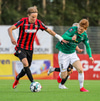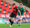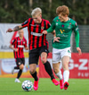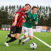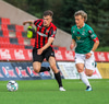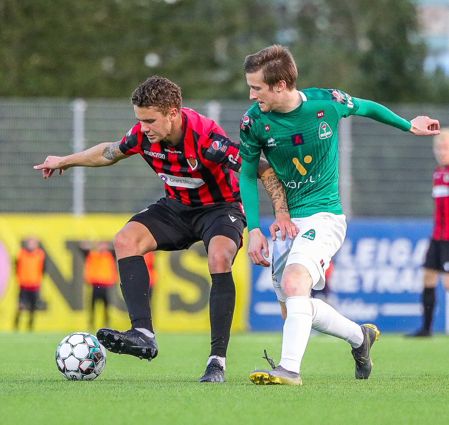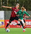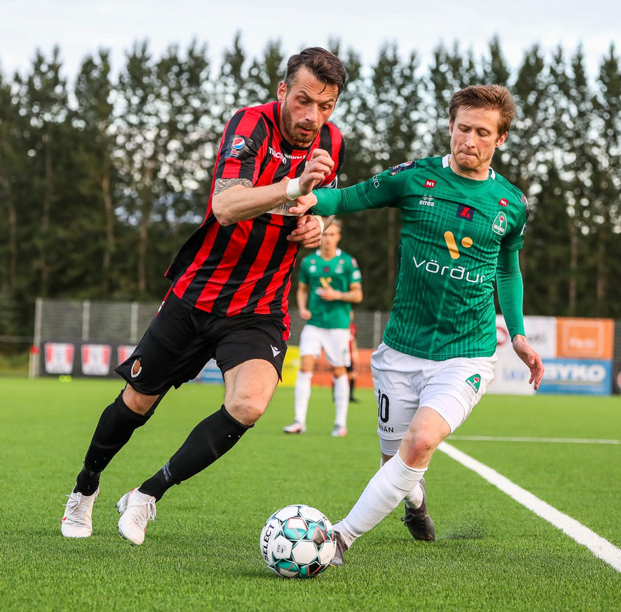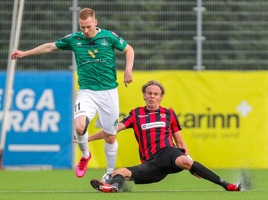 Gísli Eyjólfsson með lipra takta en Atli Barkarson nær á endanum að koma knettinum í burtu.