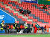 Fréttamannaaðstaðan er án rafmagns en það er verið að reyna að kippa því í lag. 20% eftir af rafhlöðunni á tölvunni minni og spenna í loftinu!