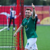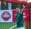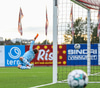 Setti boltann örugglega í hornið á meðan Ingvar skutlaði sér í hina áttina.