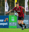 Höskuldur Gunnlaugsson fyrirliði Blika með fyrirgjöf frá vinstri eftir góða sókn en ekki nægilega góð fyrirgjöf.