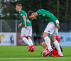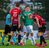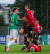 Ágúst Hlyns fer niður og vill fá aukaspyrnu en ekkert dæmt. Viktor Örn reiður og lætur Ágúst heyra það. Vill meina að um leikaraskap hafi verið að ræða. Sýður upp úr og það eru gul spjöld að fara á loft.