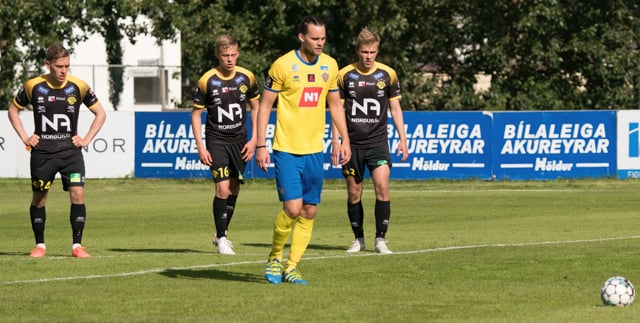 Flott veður á Akureyri í dag. 13 stiga hita og sú gula er í heimsókn. Köld norðan gola fylgir samt blíðveðrinu sem kælir leikmenn niður.