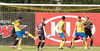 Benjamin kixkar boltann inn í sínum eigin vítateig. Guðmundur og Óttar reyna báðir við boltann sem endar með að það er dæmt sóknarbrot á Guðmund. KA menn ekki kátir en rétt niðurstaða þó.