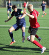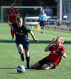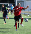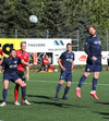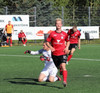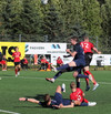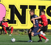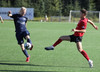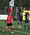 Hættulegur bolti fyrir sem Jon Tena ver, svo kemur skot í slánna og boltinn berst þaðan út. Þar skallar Joey Gibbs rétt yfir markið. Senur.