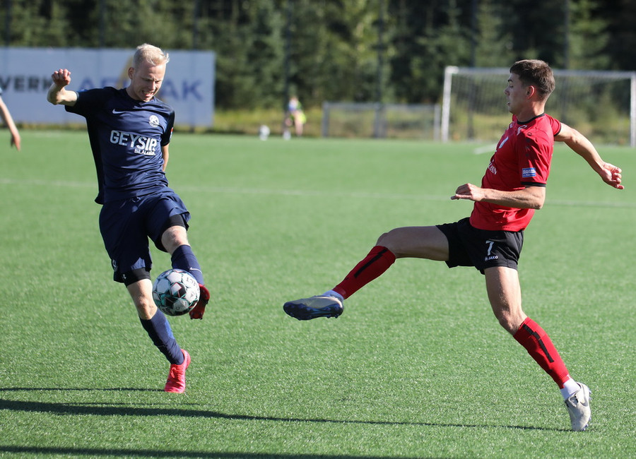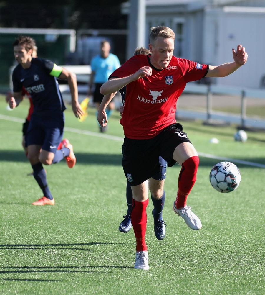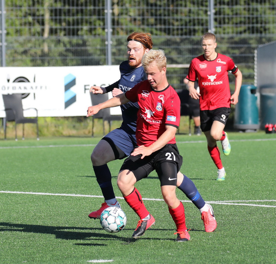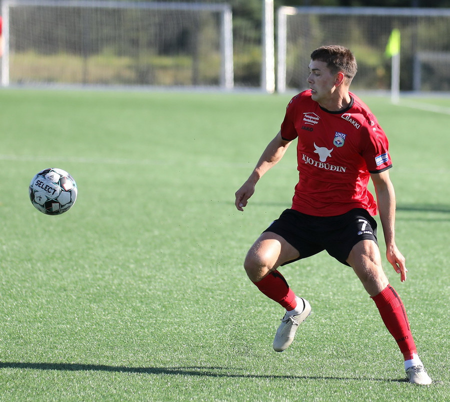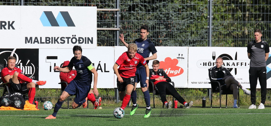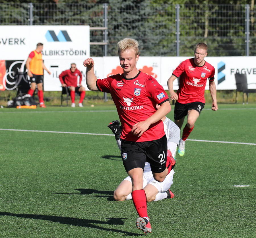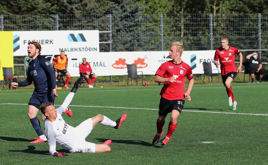 Góð skyndisókn frá heimamönnum og boltinn berst út til Hafliða í teignum. Vantaði hinsvegar kraft í skotið.