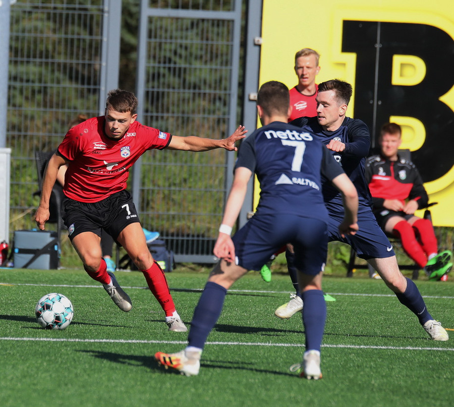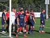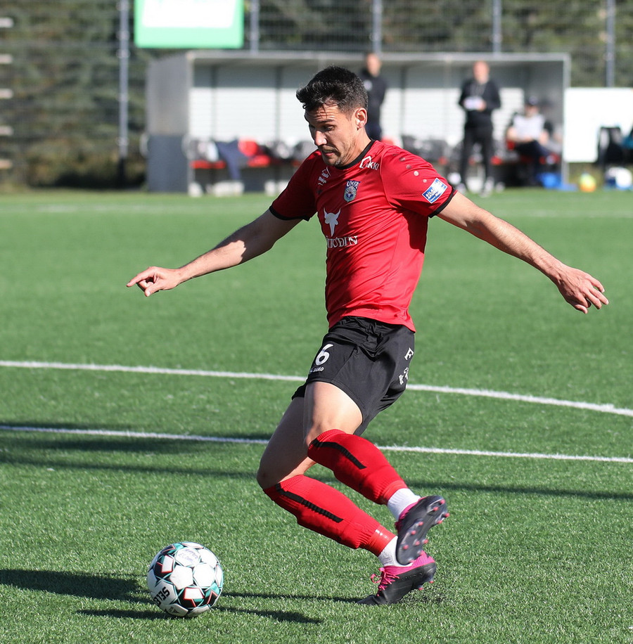 Heimamenn fá horn og eftir að boltinn er skallaðu burt tekur Oskar hann í fyrsta en skotið er vel yfir.