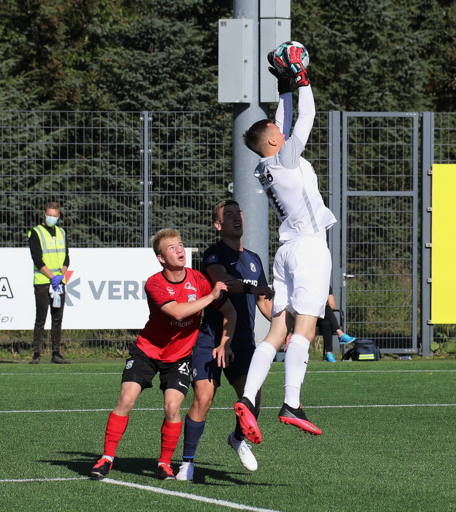 Flott spyrna frá Ale og skallar Endika boltann en þetta er beint á Sindra í markinu.