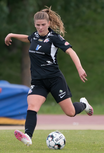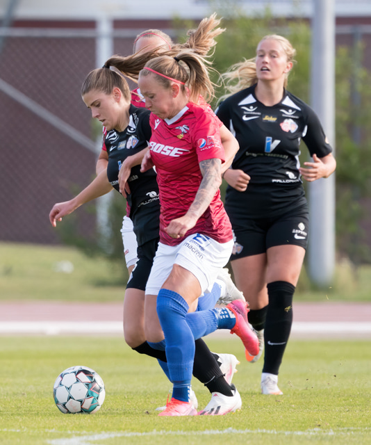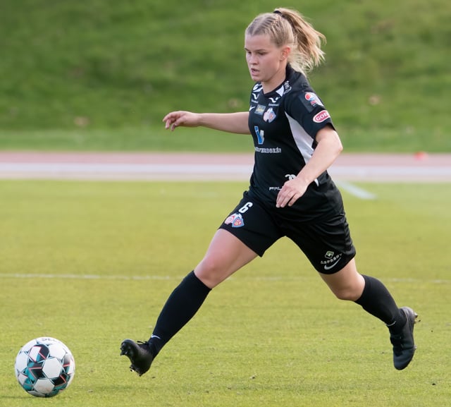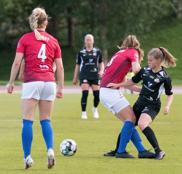 Hulda Ósk gerir mjög vel úti hægra megin en er loks stöðvuð af þriðja varnarmanni.