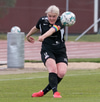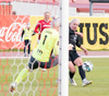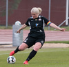 Lauren mætir út á móti stungusendingu en nær ekki að handsama knöttinn en hættan varð engin.