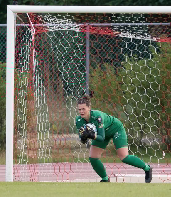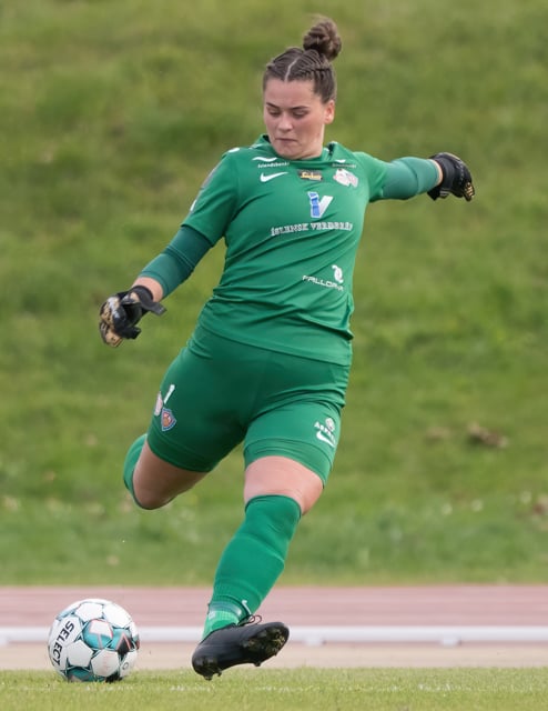 Hallbera með aukaspyrnuna inn á teiginn, Bergdís teygir sig í boltann og Lauren handsamar hann auðveldlega í kjölfarið.