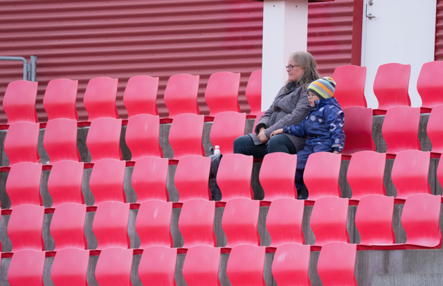 Þeir sem mega vera í stúkunni fyrir hönd Þór/KA styðja liðið sitt. Ein tromma og aðrir kalla 'Þór/KA'