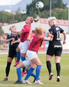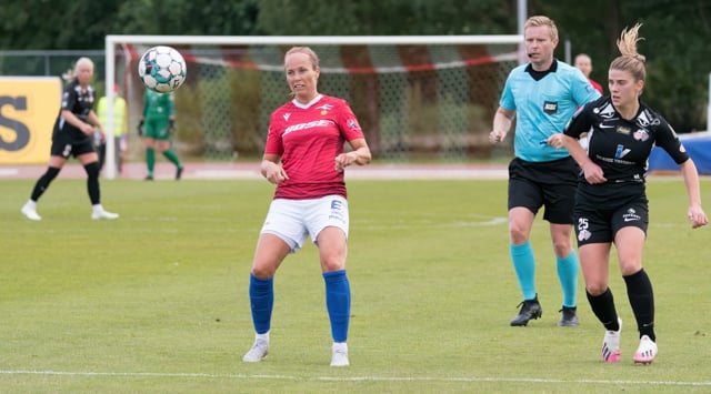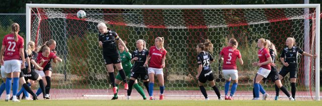 Hallbera með frábæra fyrirgjöf sem Bergdís, sem skipti um kant við Hlín, skallar yfir á fjærstönginni.