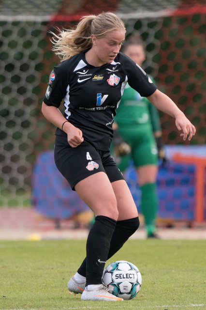 Hulda Ósk með lagleg tilþrif inn á miðjunni og reynir að finna KMS í gegn en Sandra mætir út á móti.