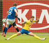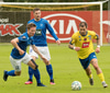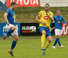 Alex missir boltann á vondum. Guðmundur nær til boltans en sendingin afskaplega léleg inn á Bjarna sem var við það að sleppa í gegn.