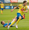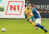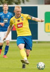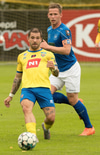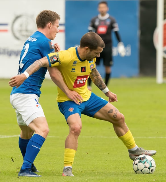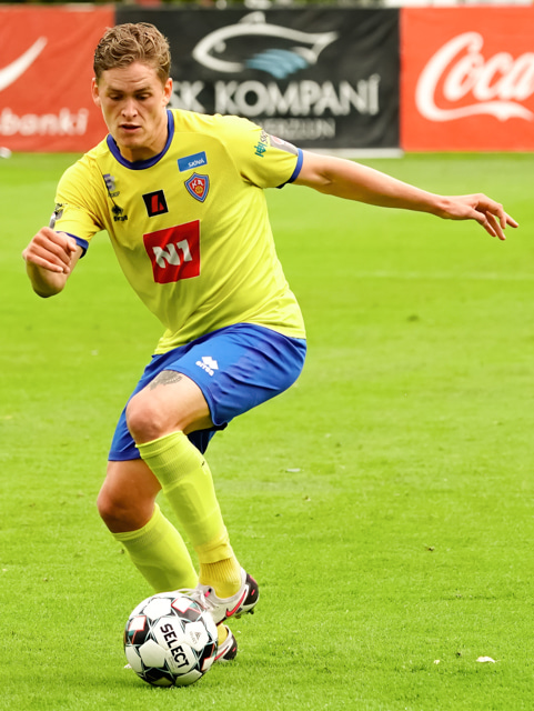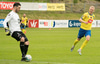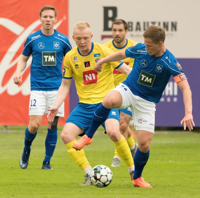 Flott spil hjá Jósef og Emil. Jósef nær fyrirgjöfinni sem Qvist nær að komast fyrir áður en Guðjón kemst í boltann.