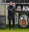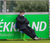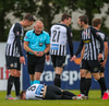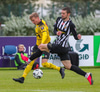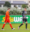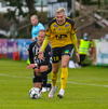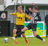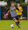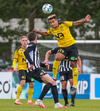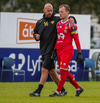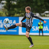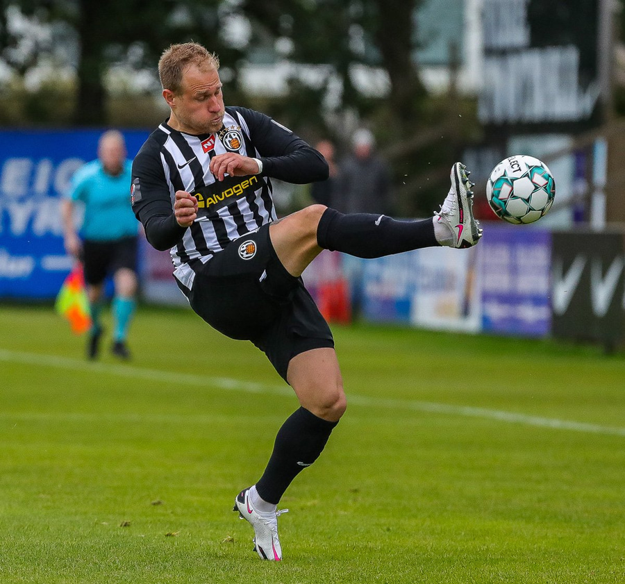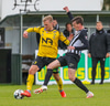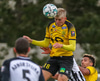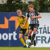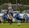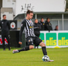 Tryggvi reynir fyrirgjöf en Kennie gjörsamlega hendir sér fyrir hana og bjargar að boltinn komist inn í teiginn.