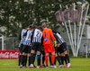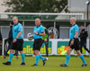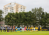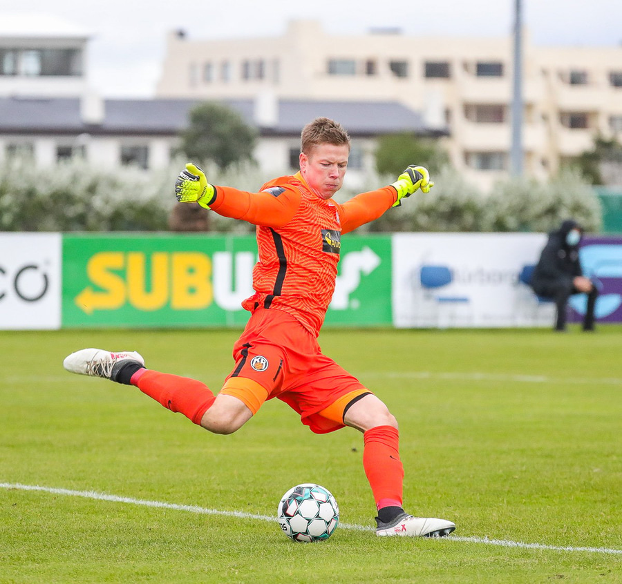 Tryggvi tekur aukaspyrnuna en hún er nálægt Beiti sem kýlir hann auðveldlega frá markinu.