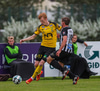 Kiddi Jóns með fastan boltann meðfram jörðinni og fer boltinn framhjá Árna Snæ en endar framhjá markinu, vantaði bara smá pot og þá hefði þetta verið mark.