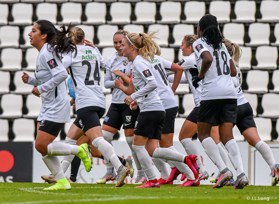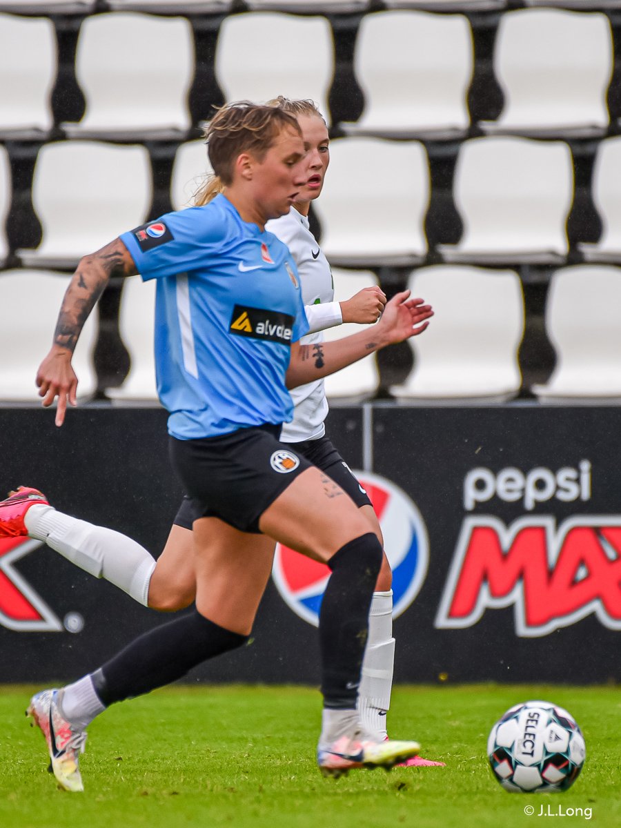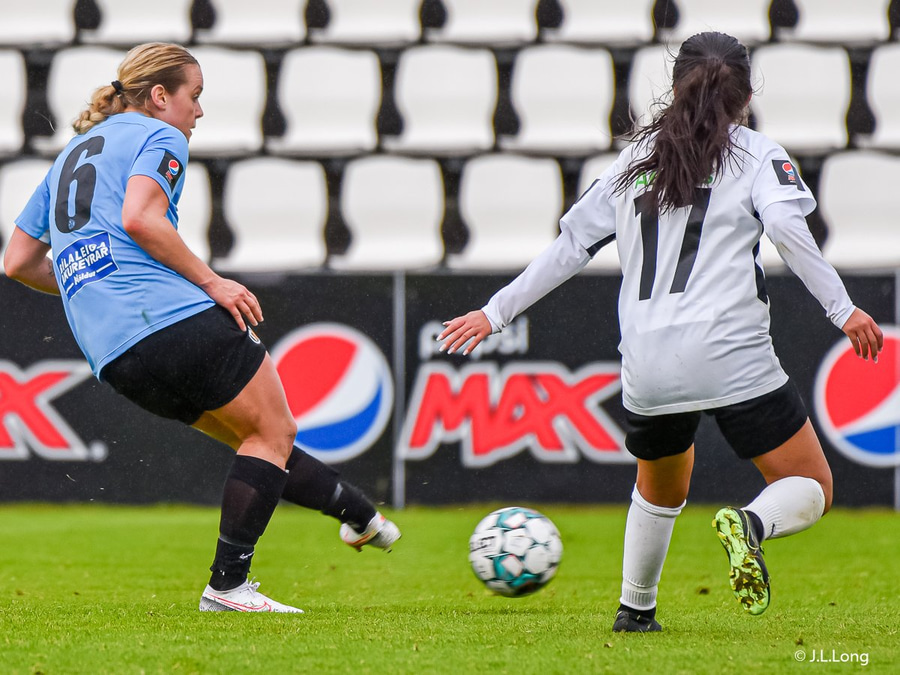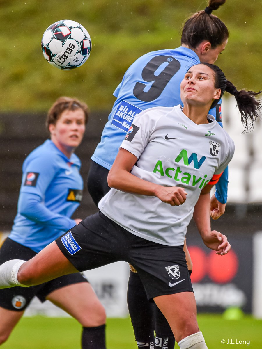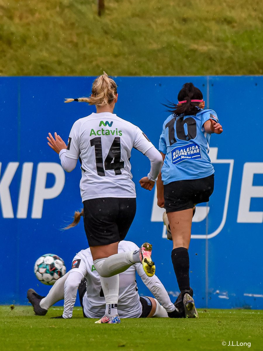 Þær hafa verið sterkari aðilinn hér í fyrri hálfleik og átt nokkur fín færi. Þær settu í 6. gír í nokkrar mínútur um miðjan hálfleik og uppskáru þá 2 mörk og dauðafæri.