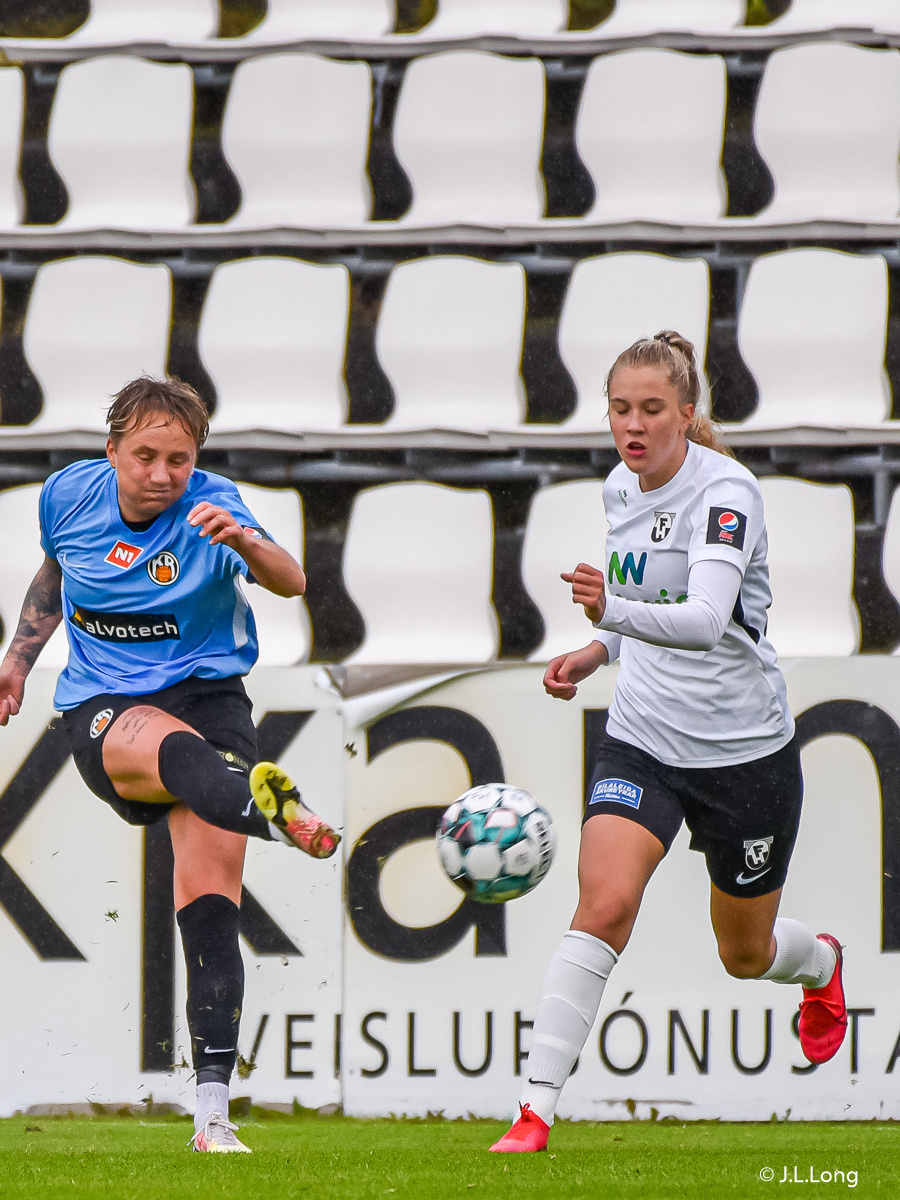Helena Ósk reynir hér skot rétt fyrir utan teig vinstra megin en það er vel framhjá. Um að gera að reyna skot þarna samt