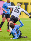 KR fær aukaspyrnu á hættulegum stað, rétt fyrir utan teig hægra megin. Þórdís Hrönn tekur spyrnuna og ákveður bara að skjóta en boltinnn fer rétt yfir markið. Fín tilraun