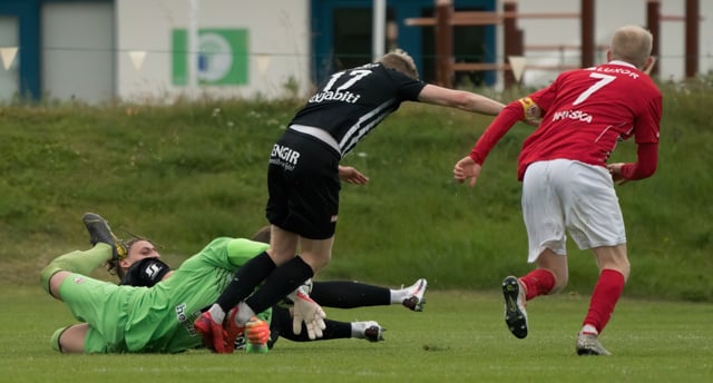 Steinþór ver svo frá Magnúsi hinu megin. Leik lýkur eftir vörslu Steinþórs.