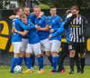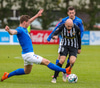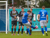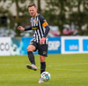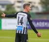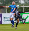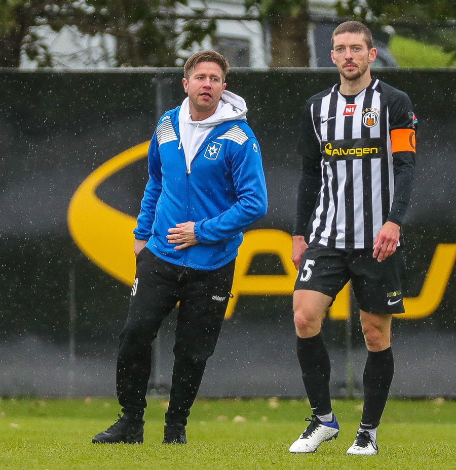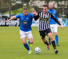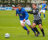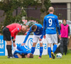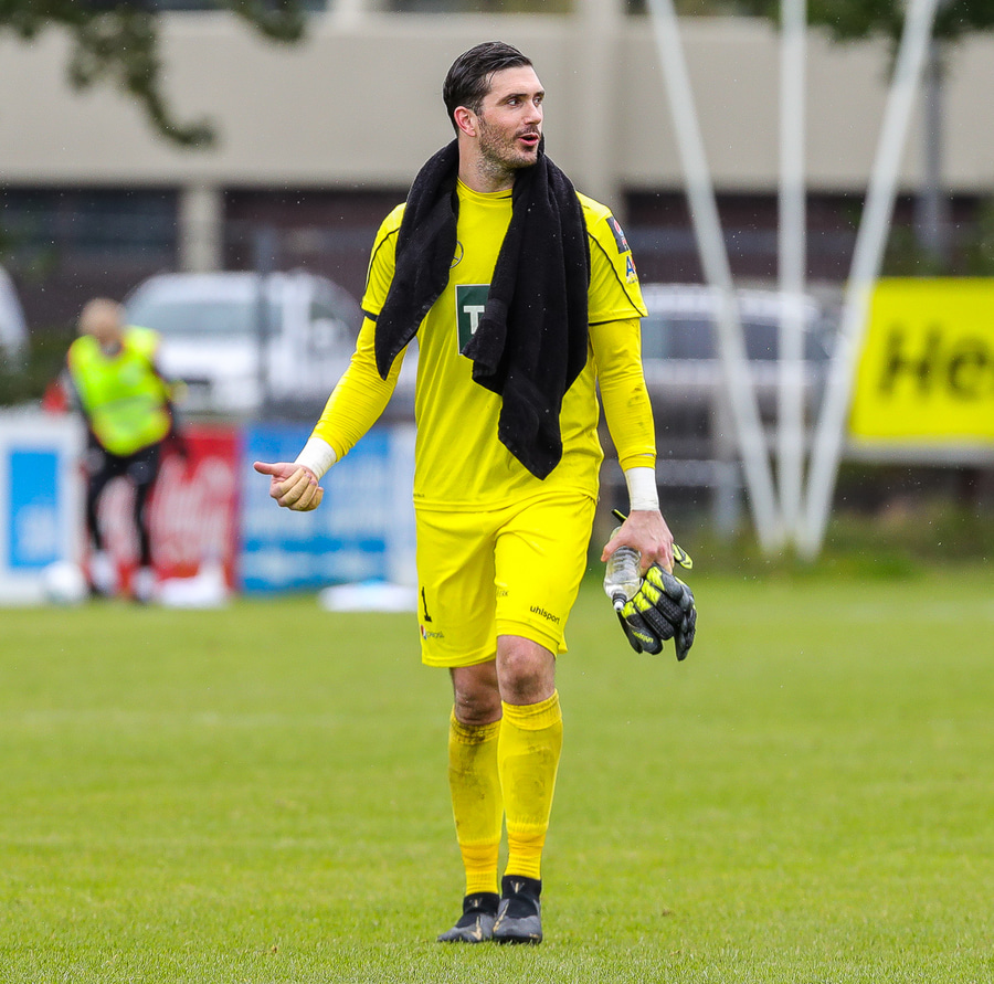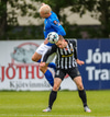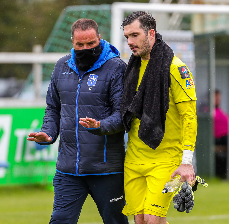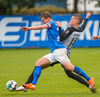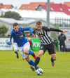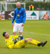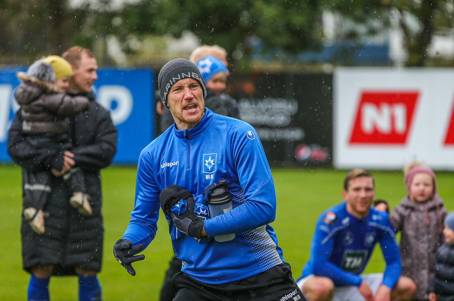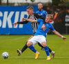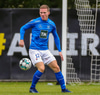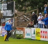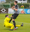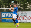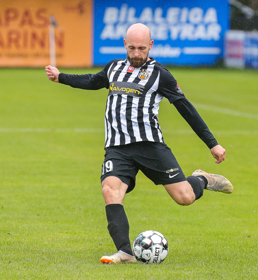 Kennie reynir hér skot með vinstri fæti við vítateigshornið en það er laflaust og Halli á ekki í neinum vandræðum með það.