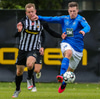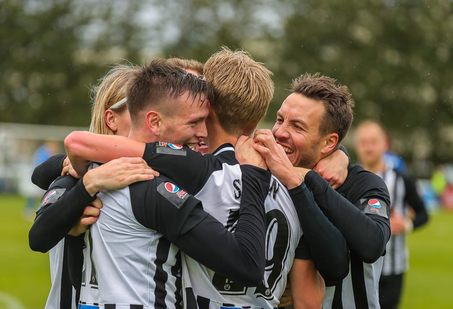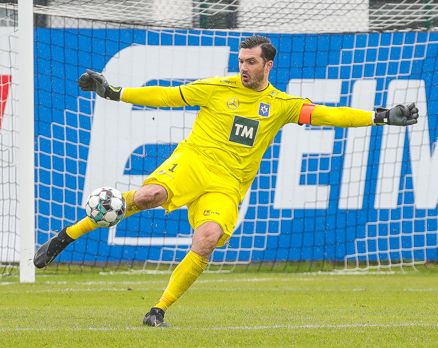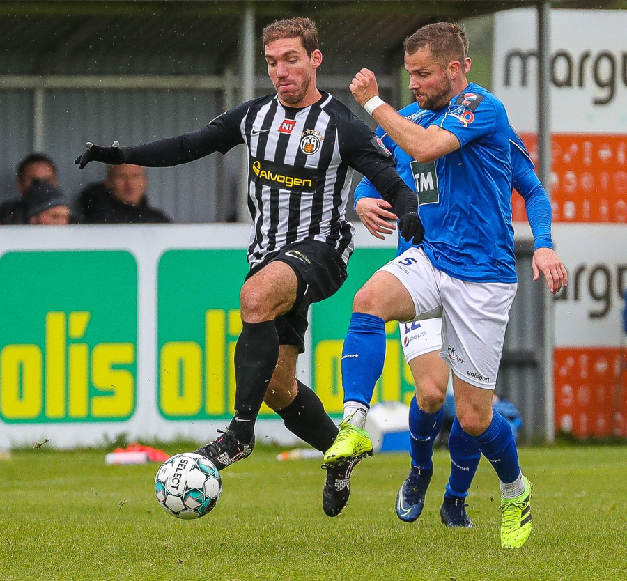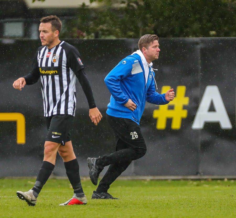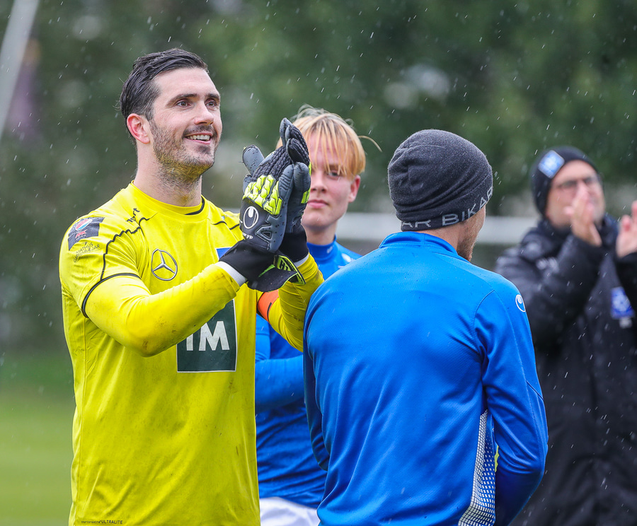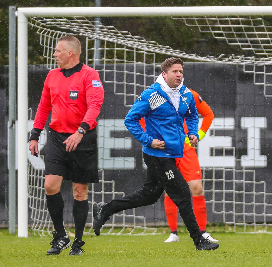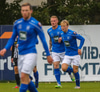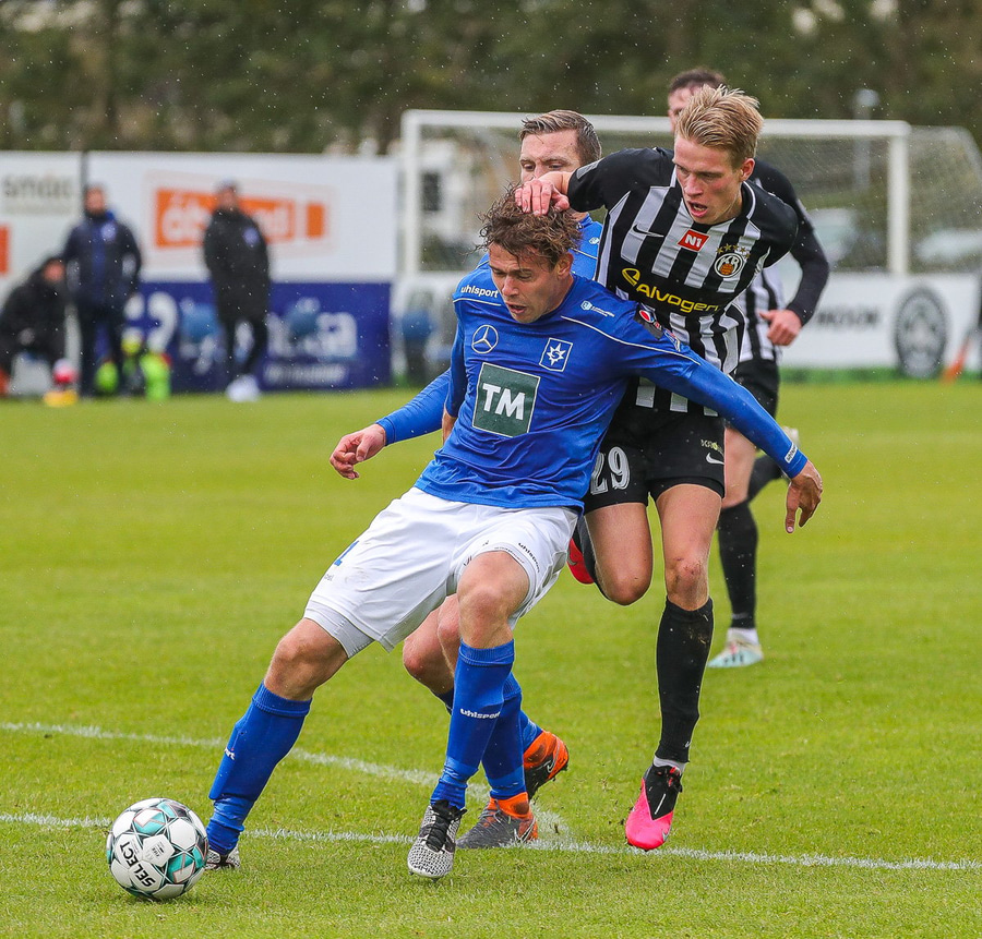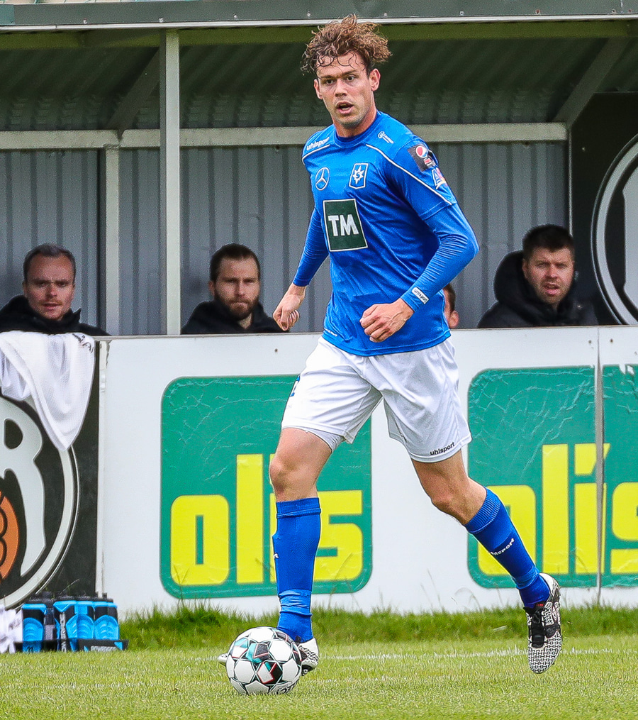 Finnur Tómas missir hann klaufalega við eigin vítateig til Þorsteins Más sem að rennir honum á Hilmar Árna, en boltinn aðeins fyrir aftan hann og skotið slakt og beint í Kennie.