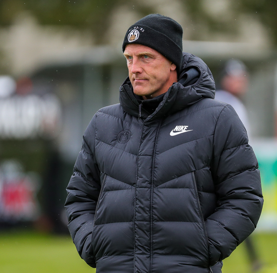 Pétur flautar leikinn á og Stjarnan byrjar með boltann. Þeir sækja í átt að KR-heimilinu, betur þekkt sem Frístundamiðstöðin Tjörnin.