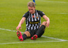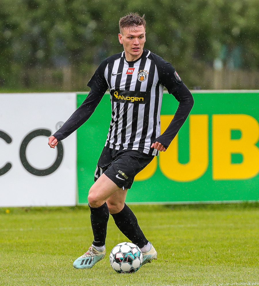 Hleypur uppí skyndisókn og missir boltann alltof langt frá sér og brýtur á Kennie. Laukrétt.