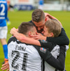 Það kemur fyrirgjöf frá hægri sem að Guðjón skallar fyrir markið. Þar er Daníel Laxdal mættur eins og sannur framherji og potar boltanum framhjá Beiti.