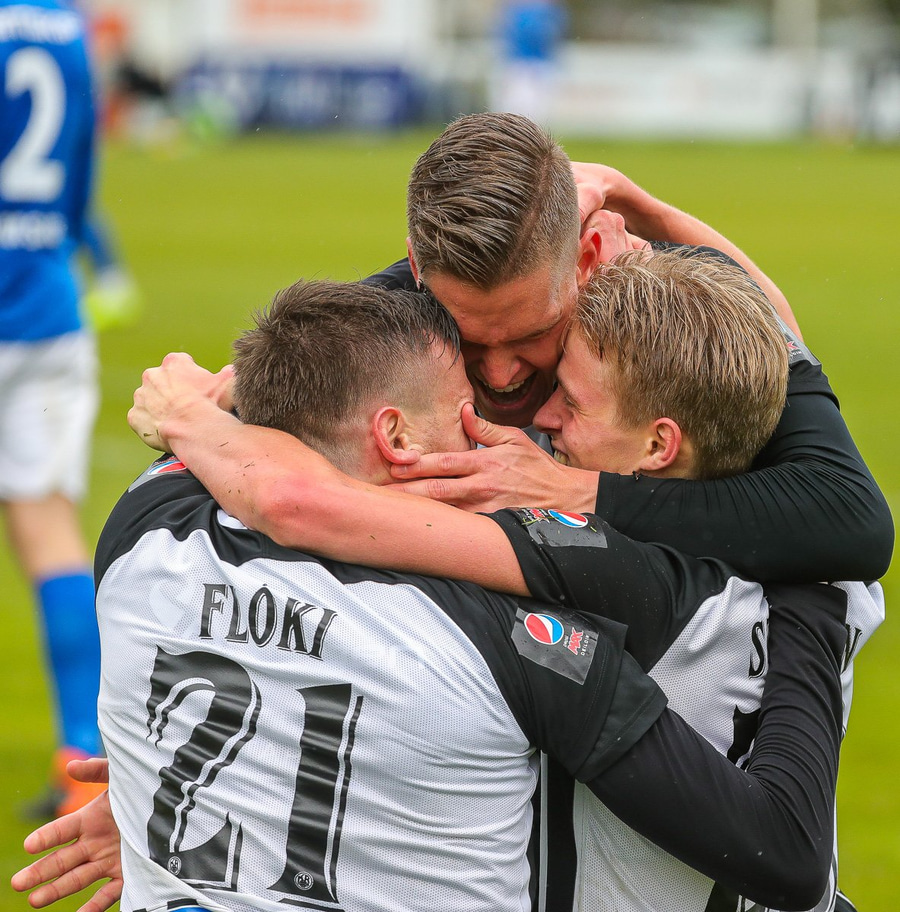 Stefán Árni fær frábæra sendingu upp á kantinn sem að hann setur snyrtilega inná teiginn. Þar er Kristján Flóki eins og gammur og setur boltann auðveldlega framhjá Halla í markinu. Gott mark.