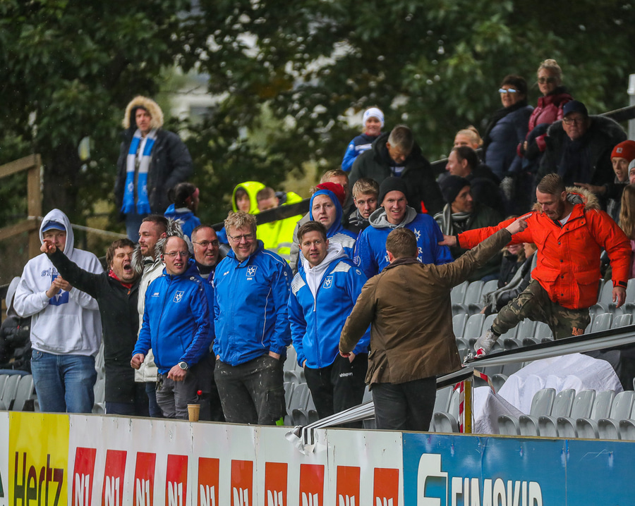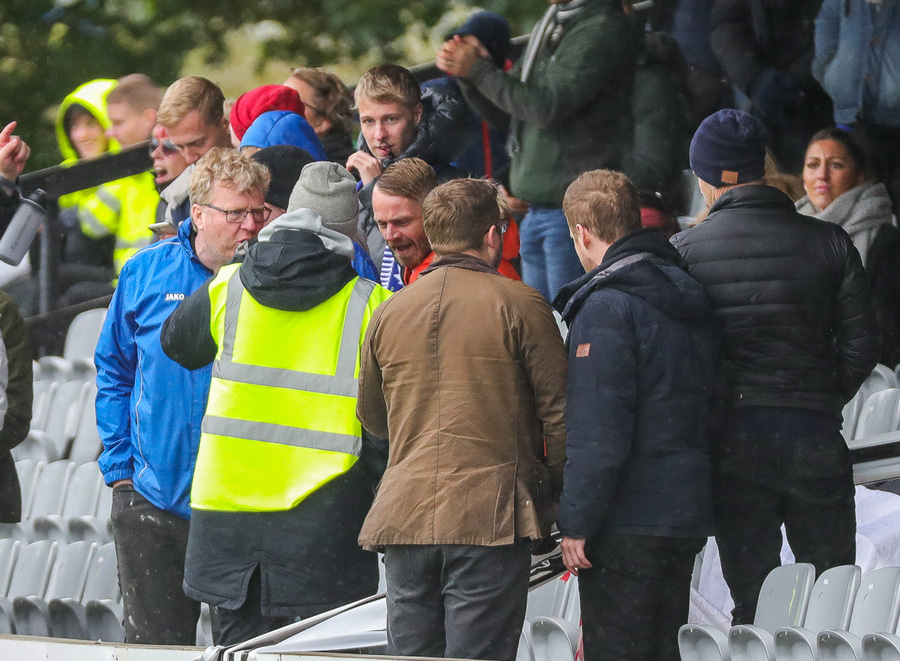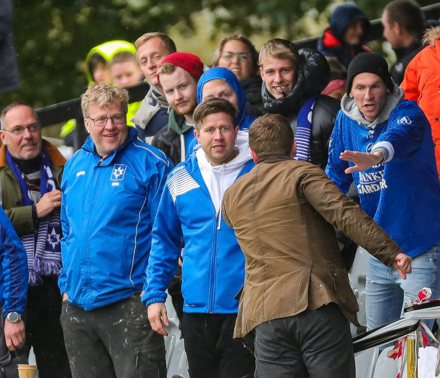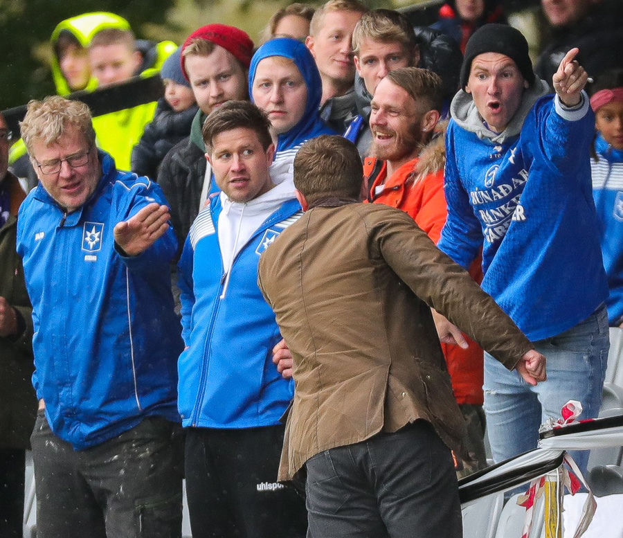 Sá þetta ekki. Það er verið að vinna í því að reka stuðningsmann Stjörnunnar af vellinum fyrir að hlaupa inná. Alvöru dramatík.
