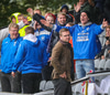 KR-ingar hlaupa hérna út á völlinn og koma sér fyrir og fylgja Stjörnumenn þeim eftir. Þá fer þessi stórleikur alveg að hefjast. Ég er spenntur og vona að þið séuð það líka lesendur góðir.