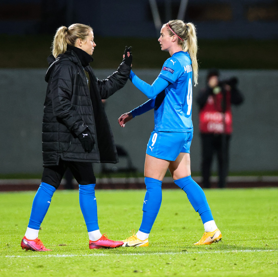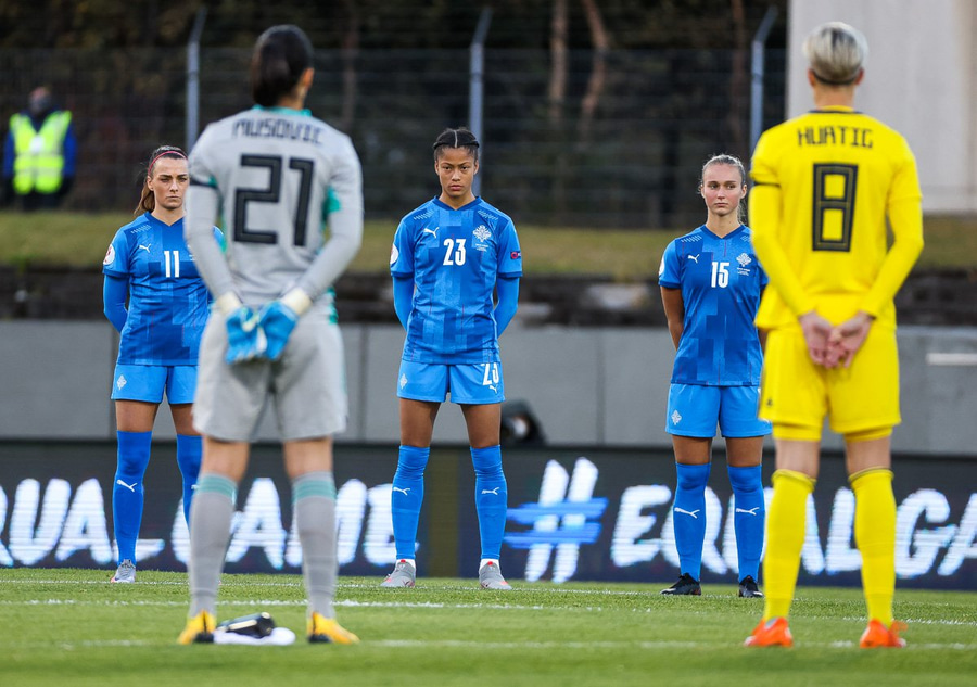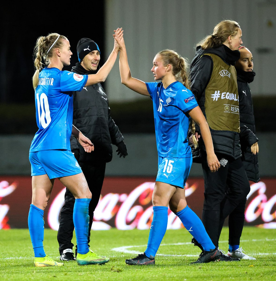 Síðasti leikur Íslendinga í riðlinum fór fram síðasta fimmtudag (17. september) og þar unnu stelpurnar okkar stórsigur, 9-0. Mörkin skoruðu Elín Metta, Sveindís Jane (2x), Dagný Brynjarsdóttir (3x), Alexandra Jóhanns og Karólína Lea. Karolina Miksone, leikmaður ÍBV, varð svo fyrir því óláni að skora sjálfsmark.