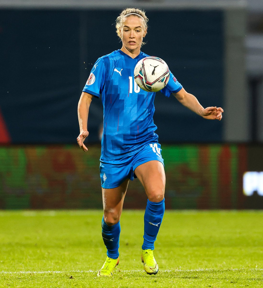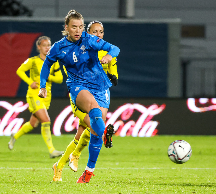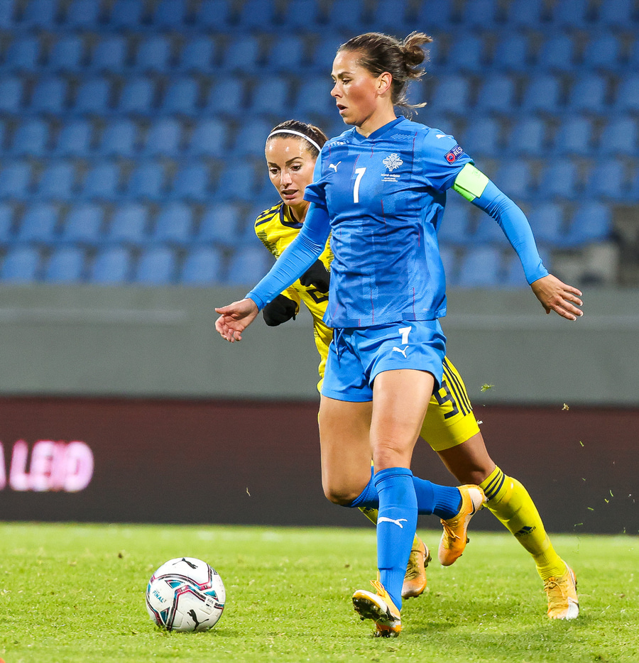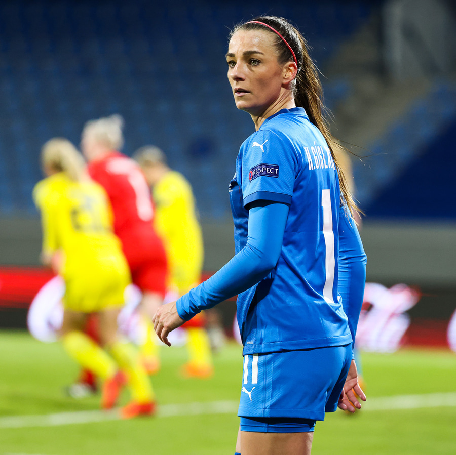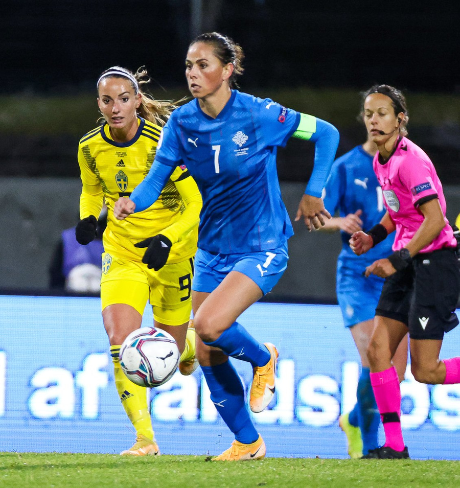 Sara Björk, Evrópumeistari og fyrirliði landsliðsins, spilar að öllum líkindum sinn 133. landsleik í kvöld og getur með því jafnað leikjamet Katrínar Jónsdóttur. Þetta er að sjálfsögðu stórkostlegur árangur hjá Söru.